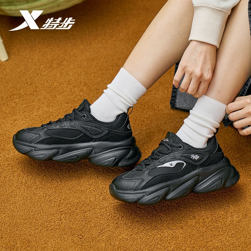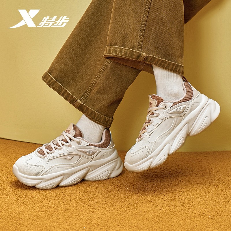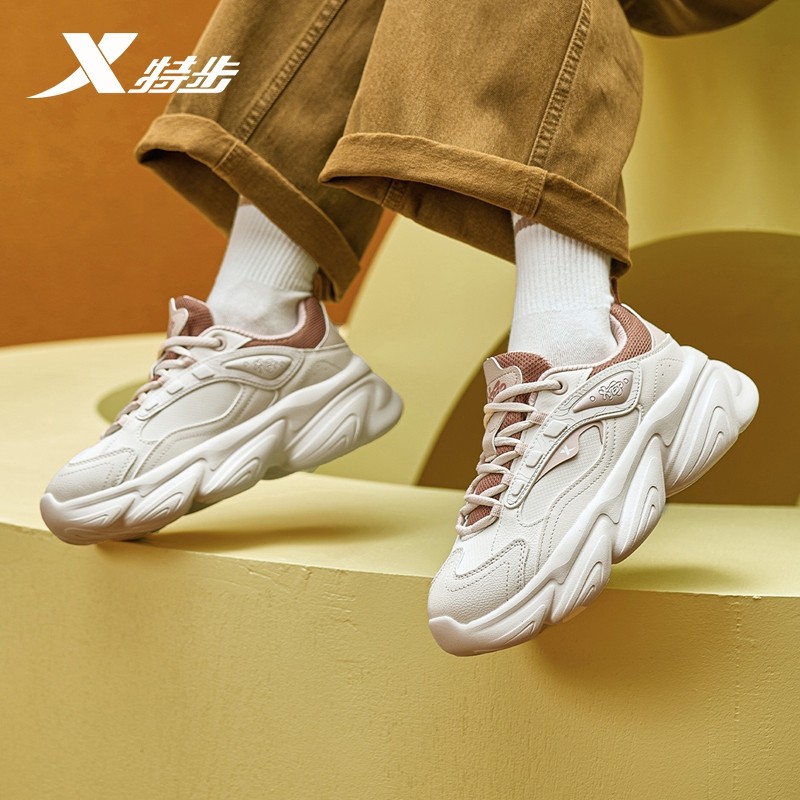 王鹤棣同款丨特步巴斯克2休闲鞋女复古老爹鞋增高运动鞋男鞋棉鞋