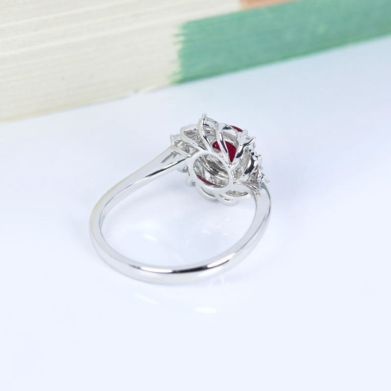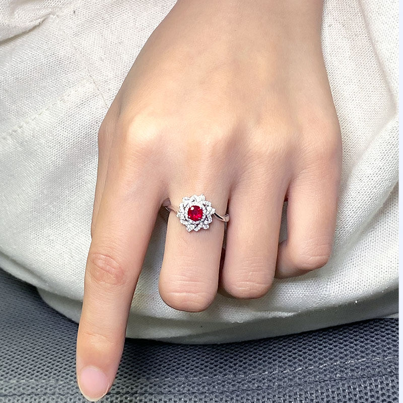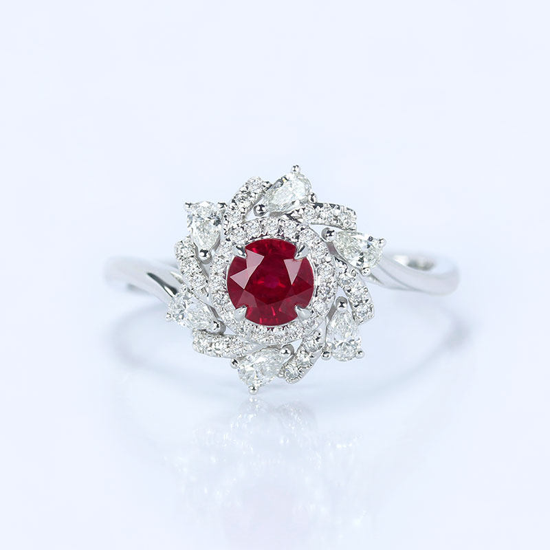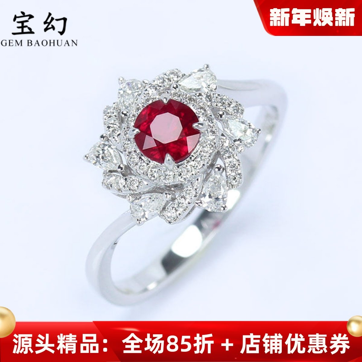 星河18K白金缅甸天然鸽血红宝石圆形戒指 满镶钻石正红色女款手饰
