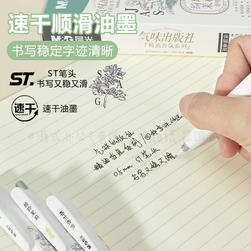 晨光气味出版社精油香氛系列香味按动中性笔学生用ST笔头0.5速干黑刷题笔高颜值ins香味按动水笔刷题笔J4509