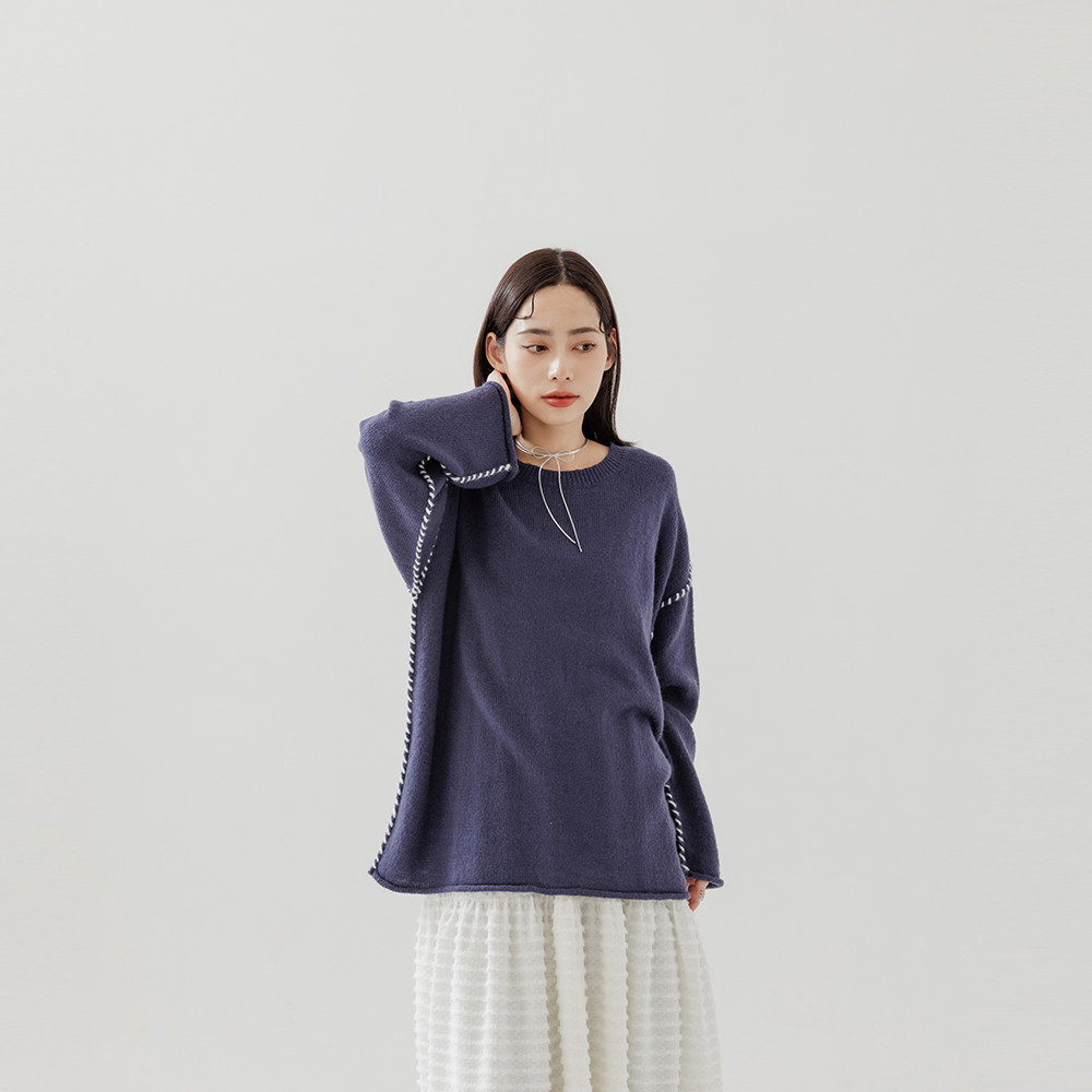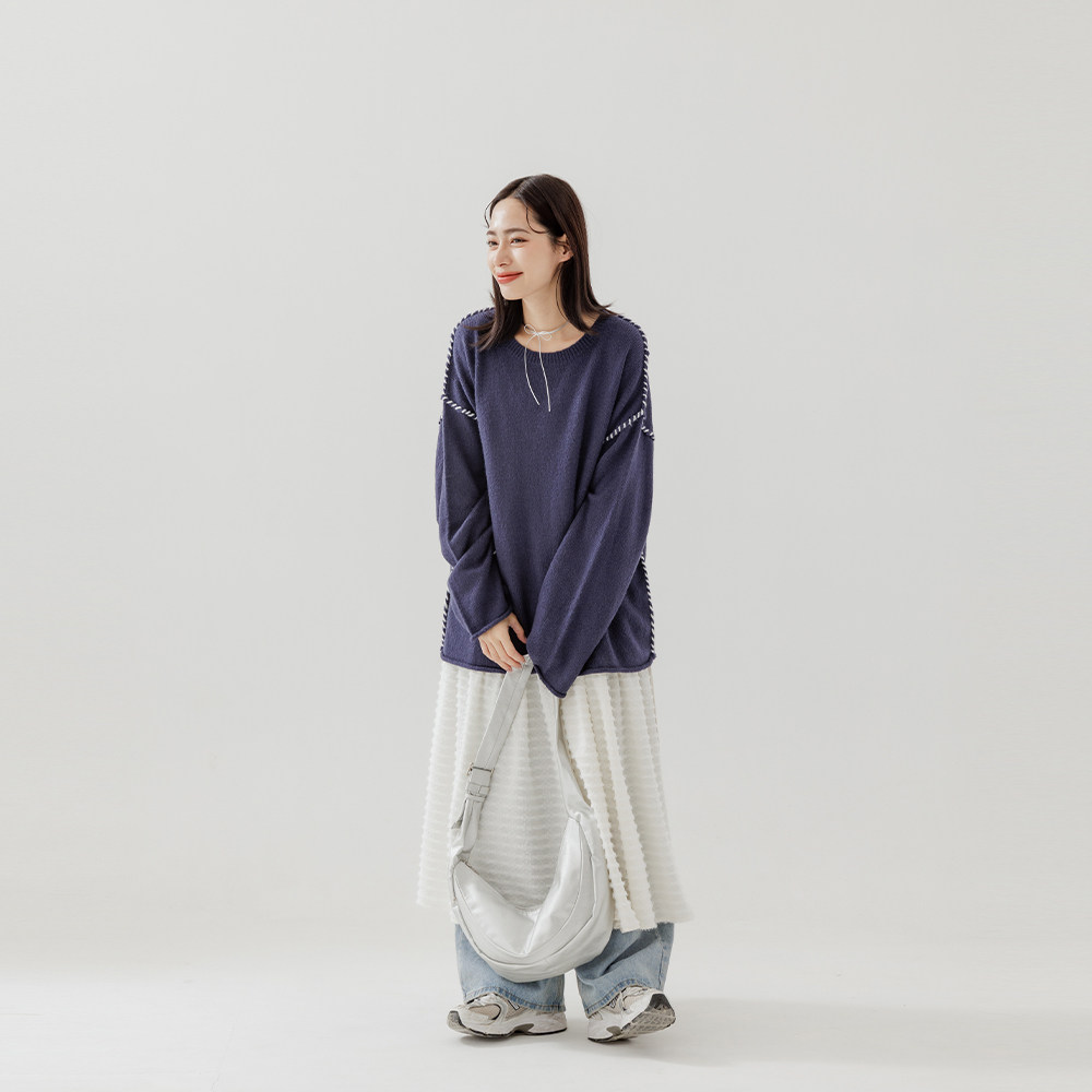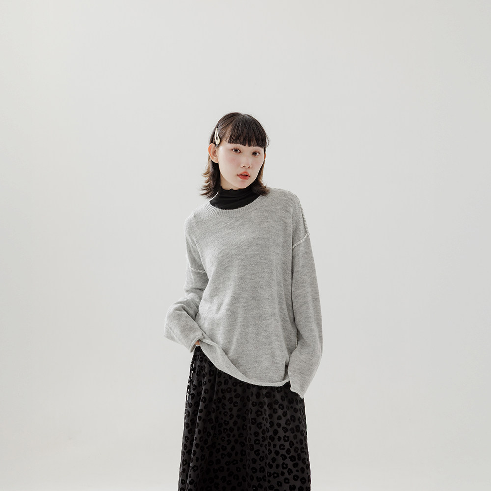 QUEENSHOP 2025秋冬新品女装马海毛手缝线设计宽版毛衣01071211