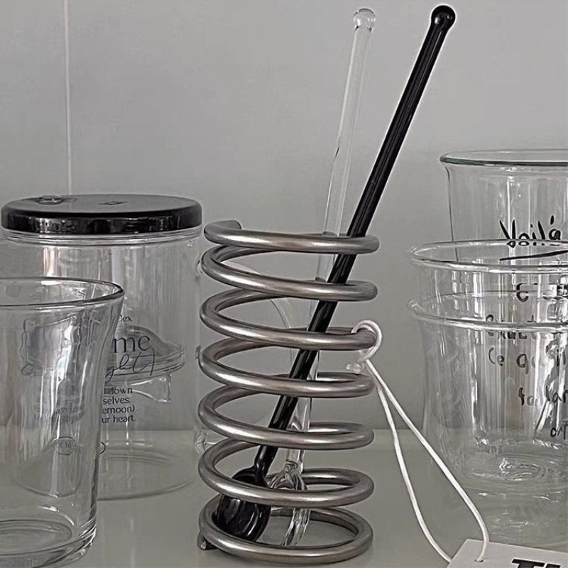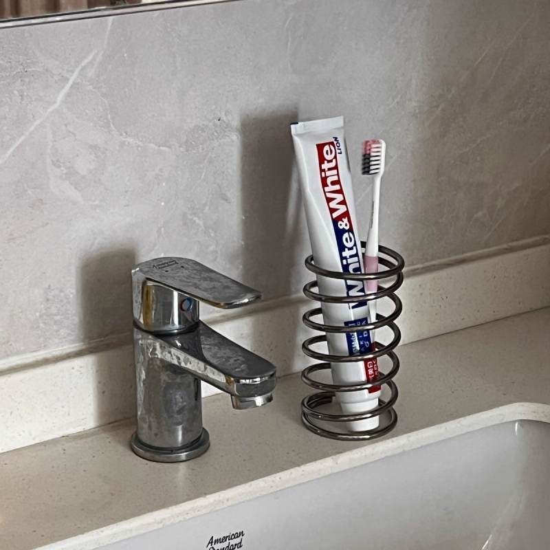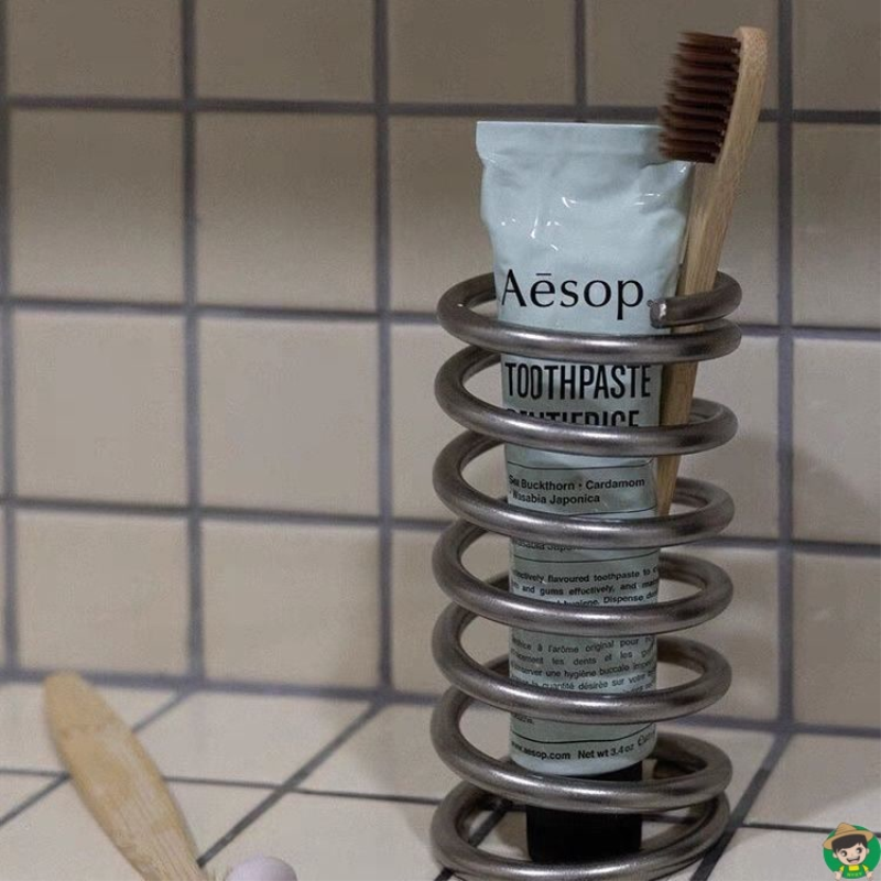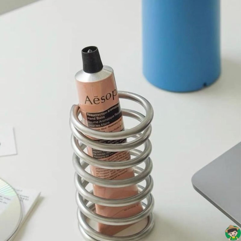 可爱弹力不锈钢螺旋透气牙刷架桌面收纳筒装饰笔筒防水个性学生宿舍卧室设计感小众弹簧形状圆珠笔眉笔刷