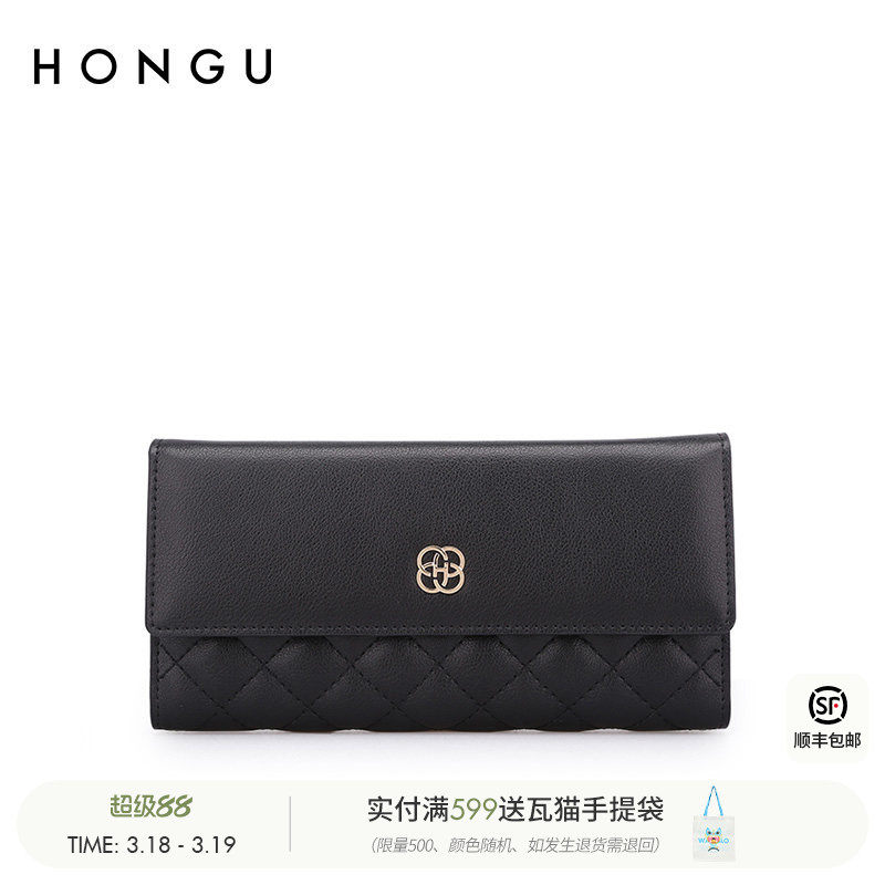 红谷新款牛皮钱包女长款韩版简约钱夹三折多功能皮夹小手包手拿包