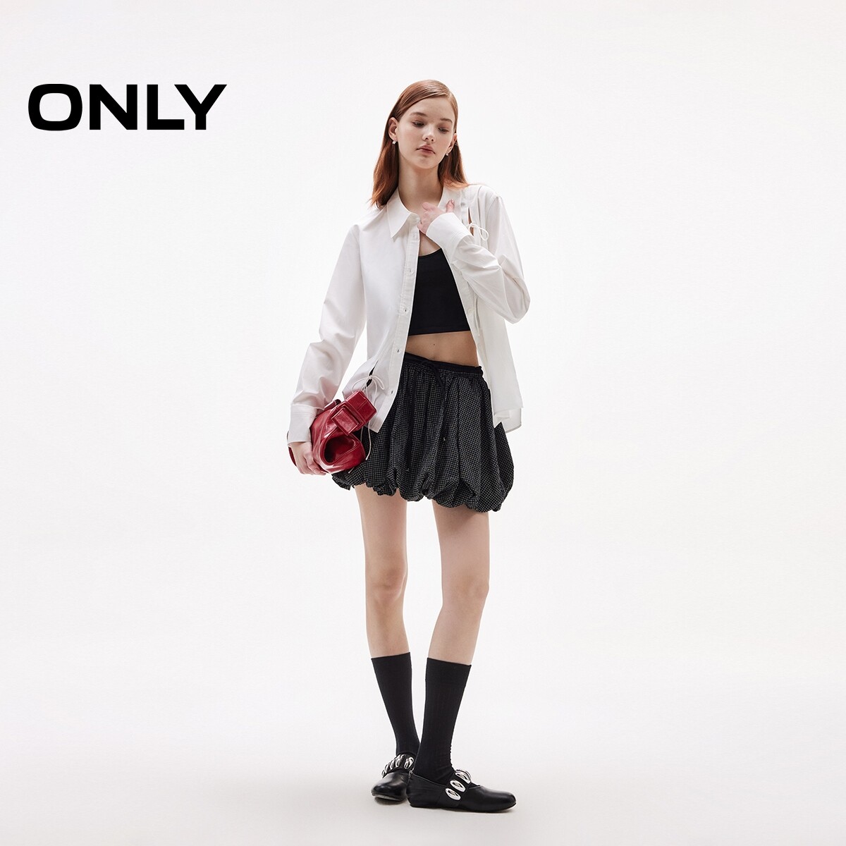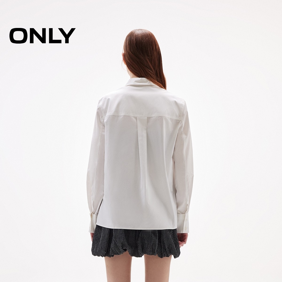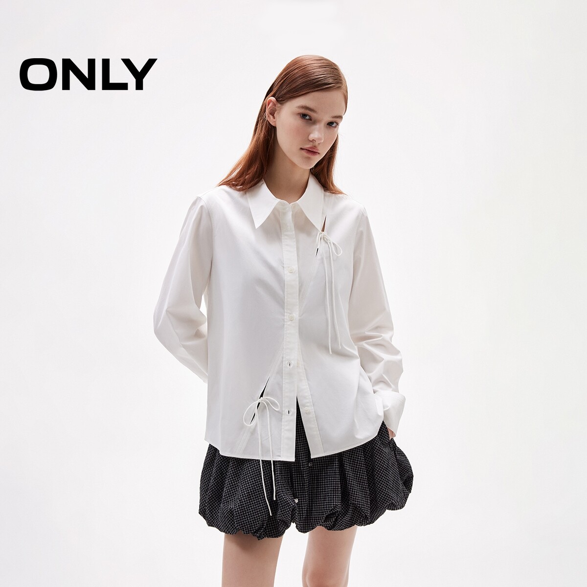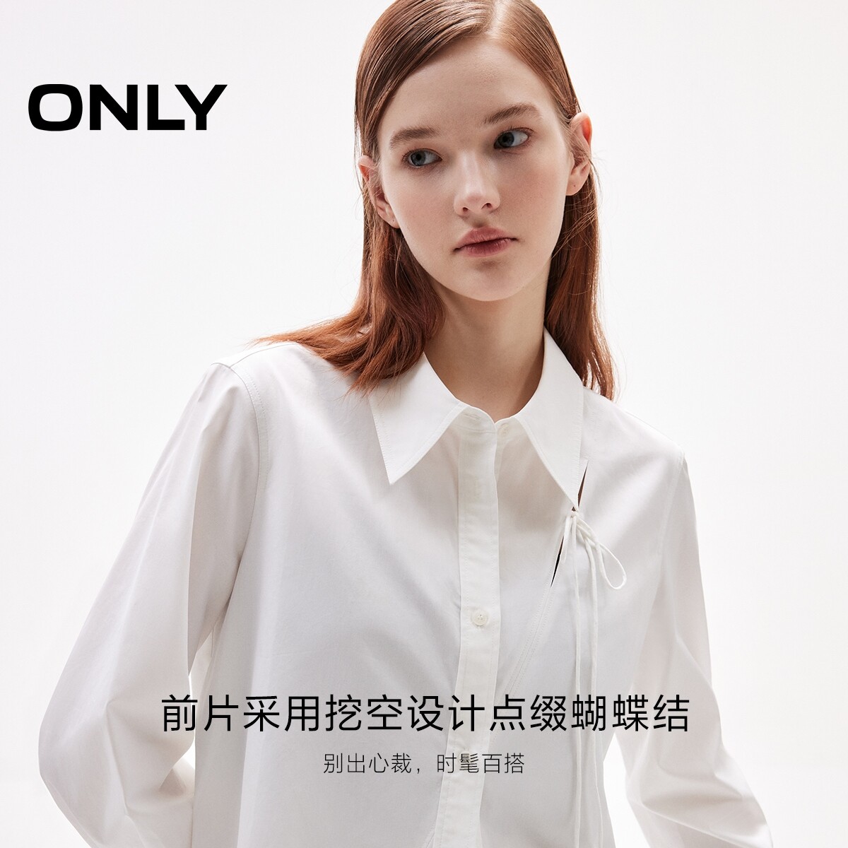 【ONLY奥莱】春款甜美系带蝴蝶结纯色正肩直筒显瘦翻领长袖衬衫女