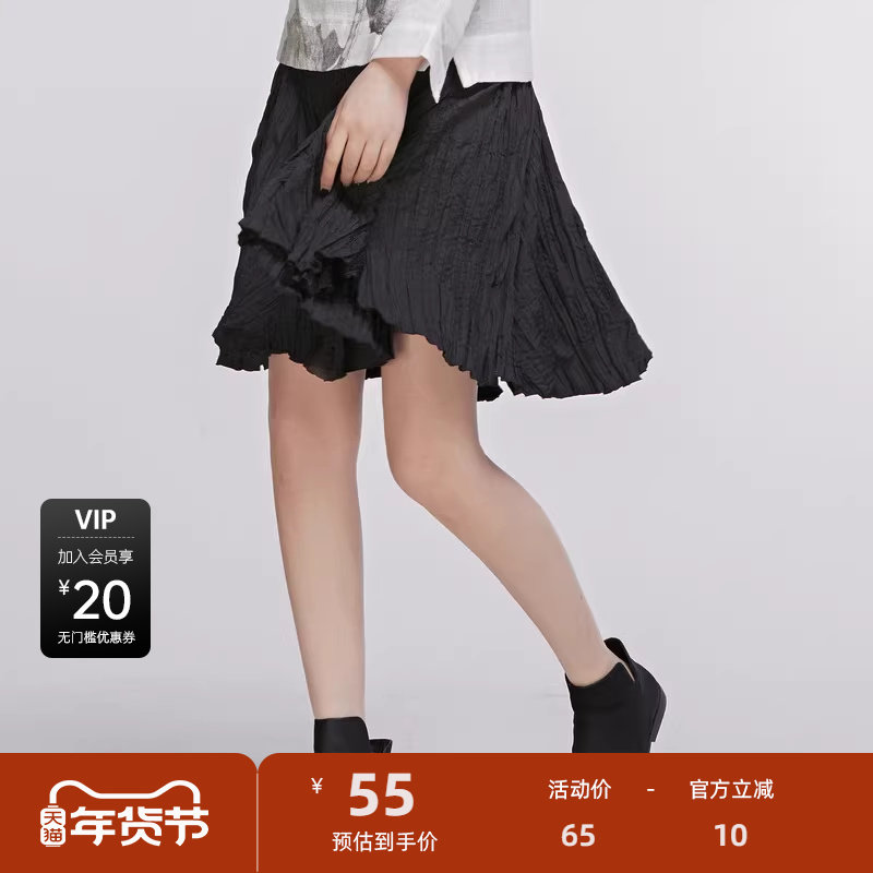 RAPPEYE 设计感褶皱折叠伞裙显瘦高腰不规则A字裙小个子半身裙女