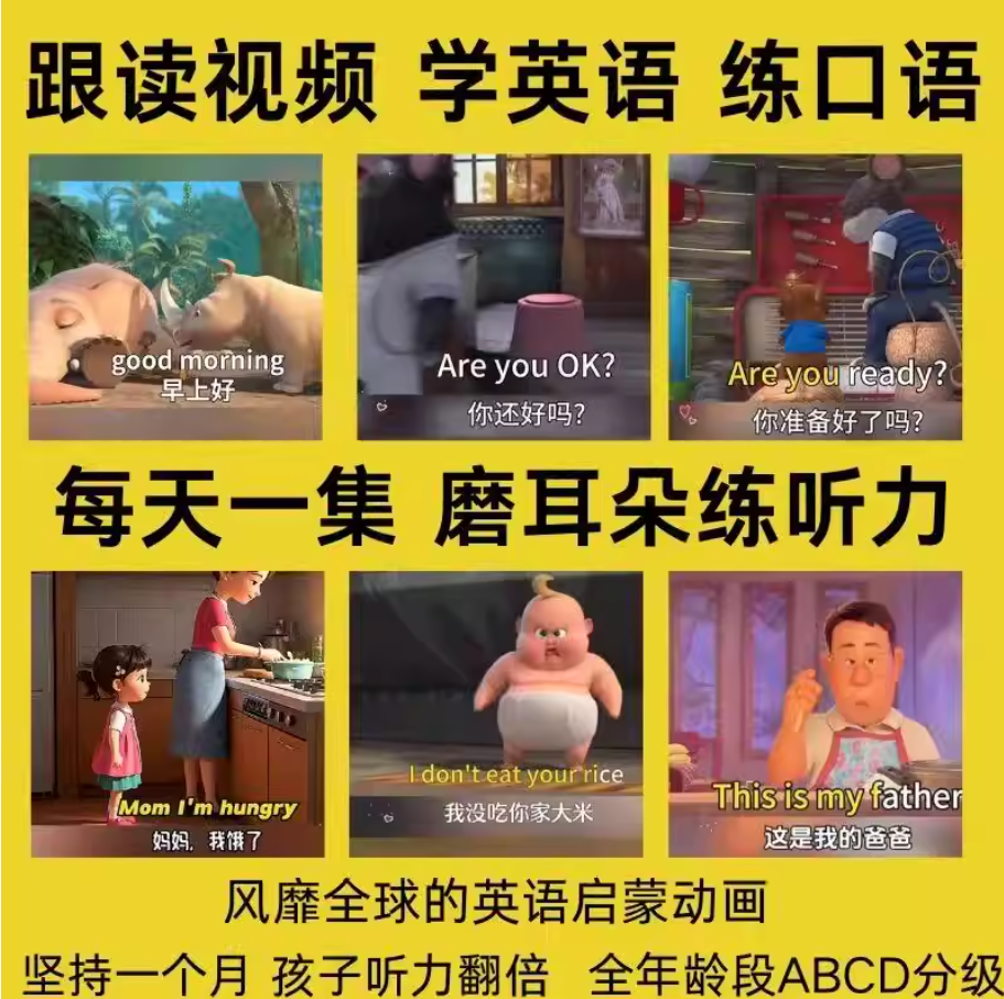 早教幼儿英语磨耳朵启蒙动画零基础口语听力跟读视频学习教程音频