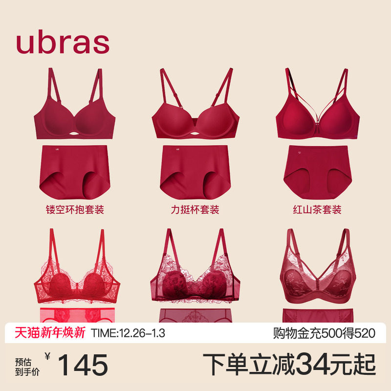 ubras红色小胸聚拢内衣无痕性感法式蕾丝送礼结婚本命年文胸套装