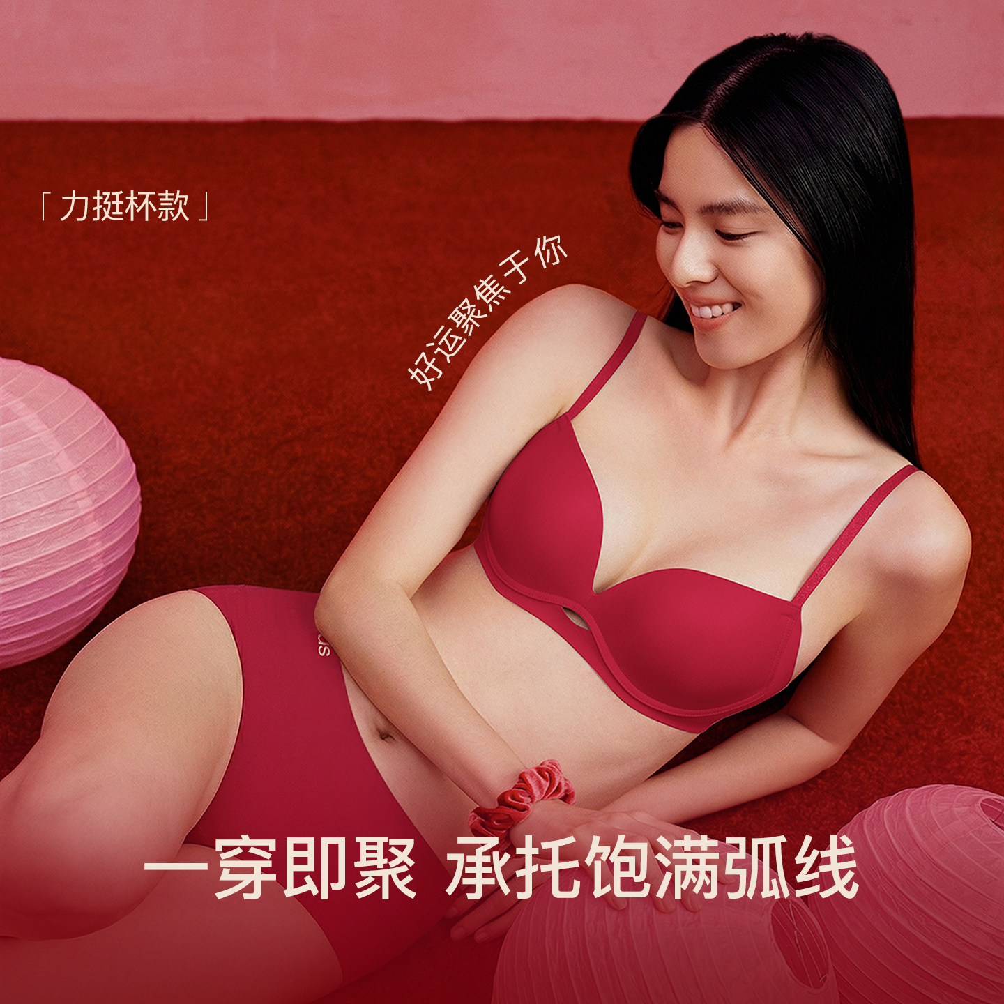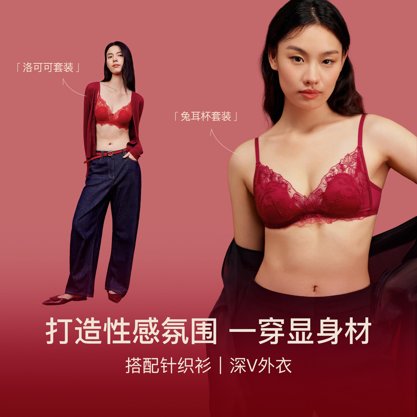 【宋轶同款 玫瑰舒挺杯】安莉芳小胸显大内衣本命年红无钢圈文胸