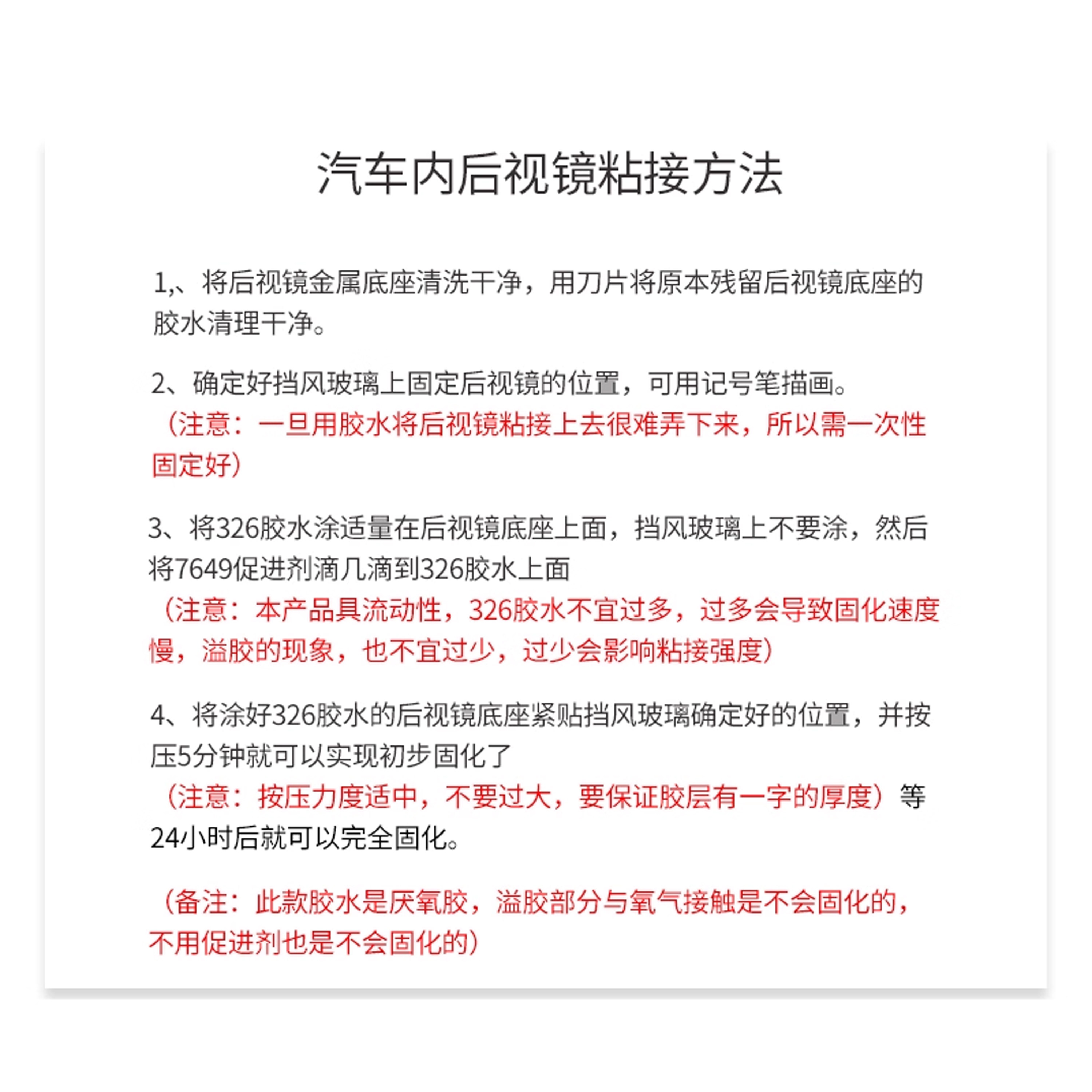 乐秦进口汽车内后视镜专用胶水倒车镜底座粘挡风玻璃反光镜记录仪流媒体支架底座金属铝块固定耐高温强力胶水