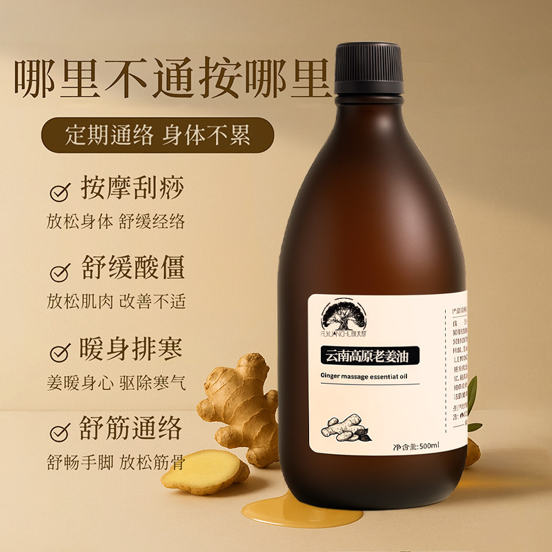 云南老姜油按摩刮痧精油开背全身通经络发热生姜艾草腿腹部推拿油