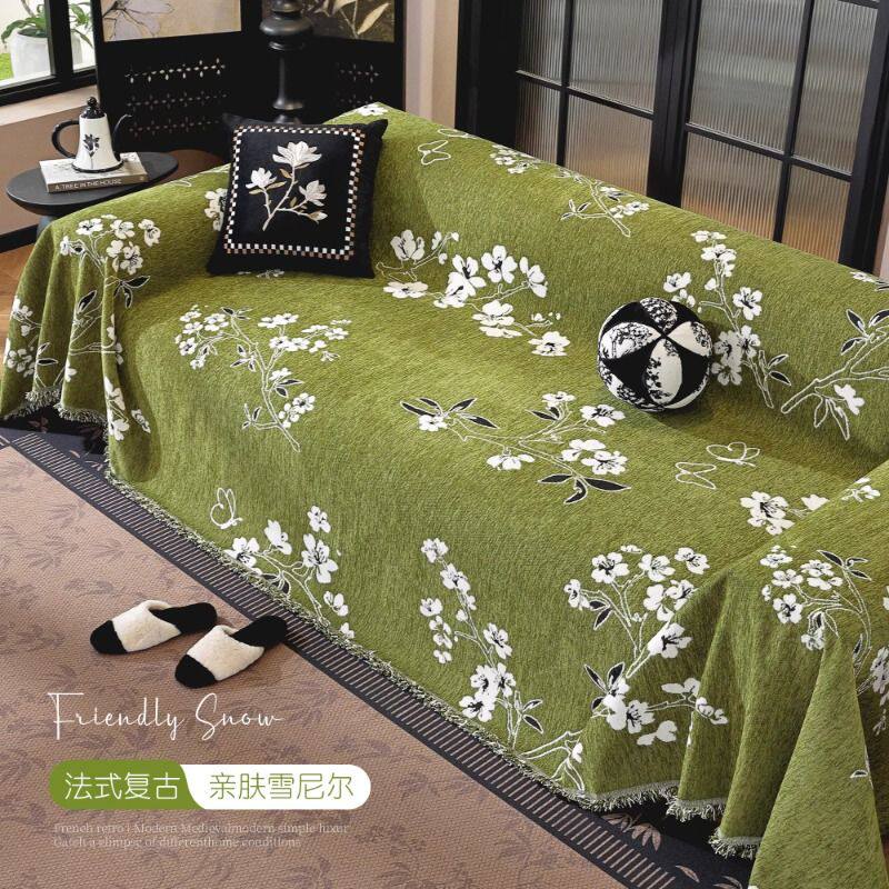 法式雪尼尔沙发盖布全包四季通用复古风防滑沙发巾美式沙发垫盖毯