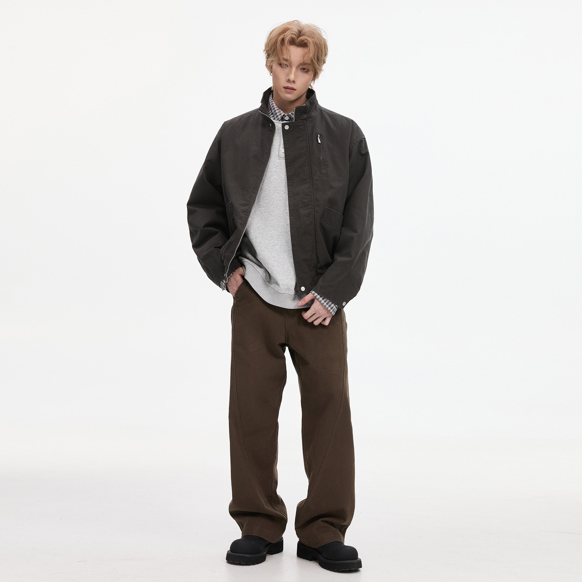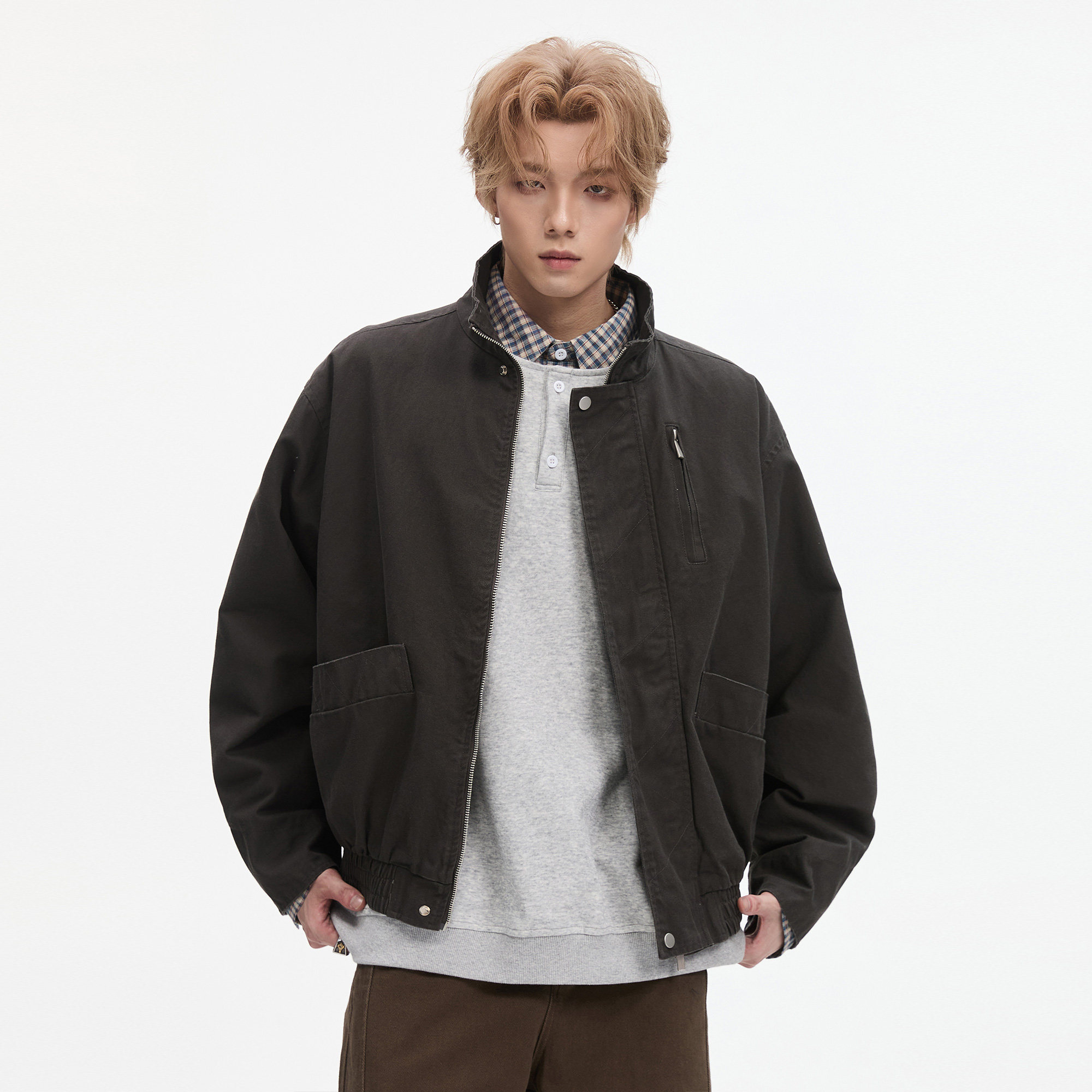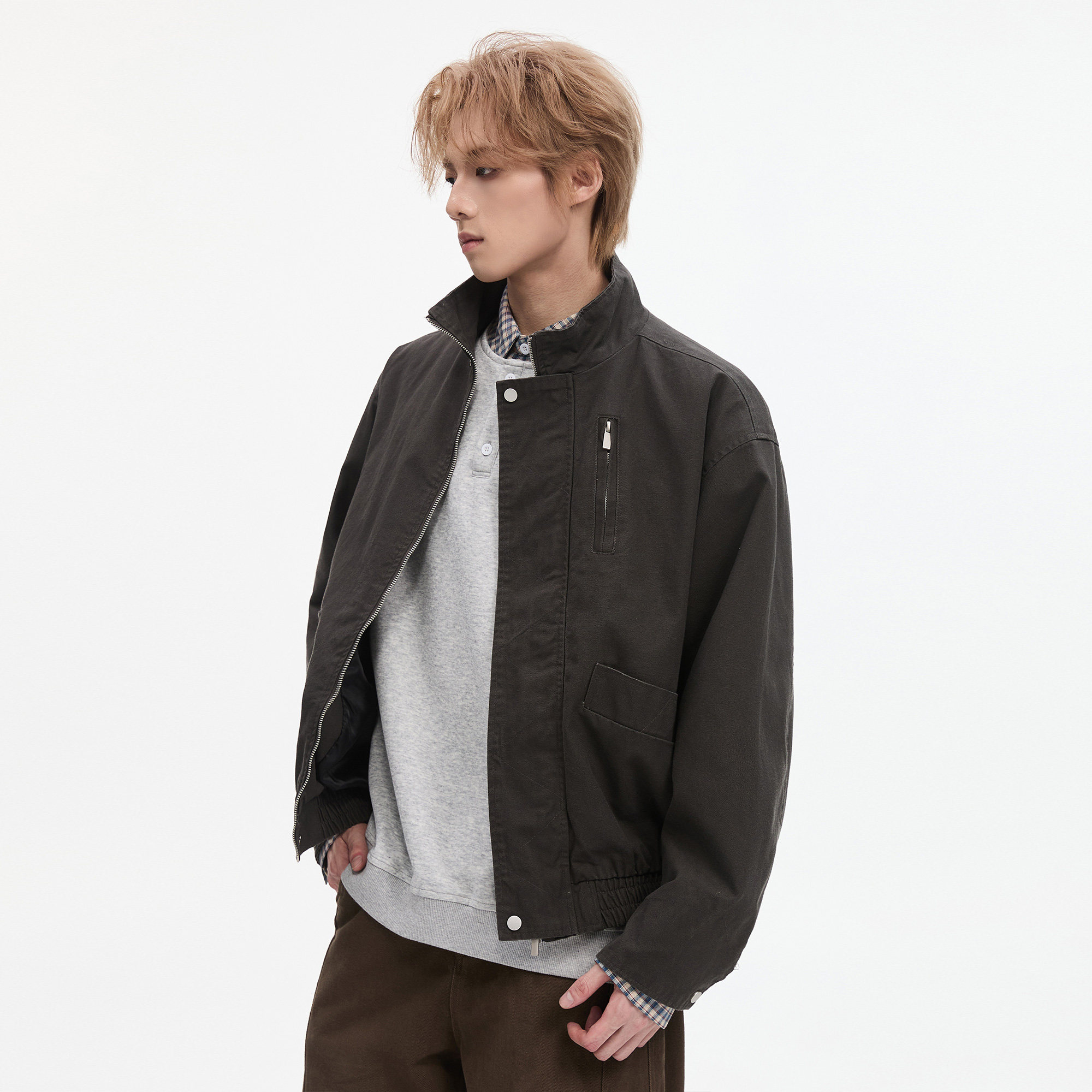 ALLIN 巴恩风立领飞行夹克男春秋季美式复古短款宽松情侣工装外套