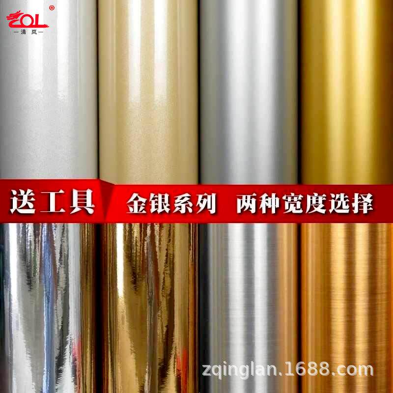 不锈钢贴纸拉丝金拉丝银自粘金色银色家具翻新贴纸亮面PVC墙纸