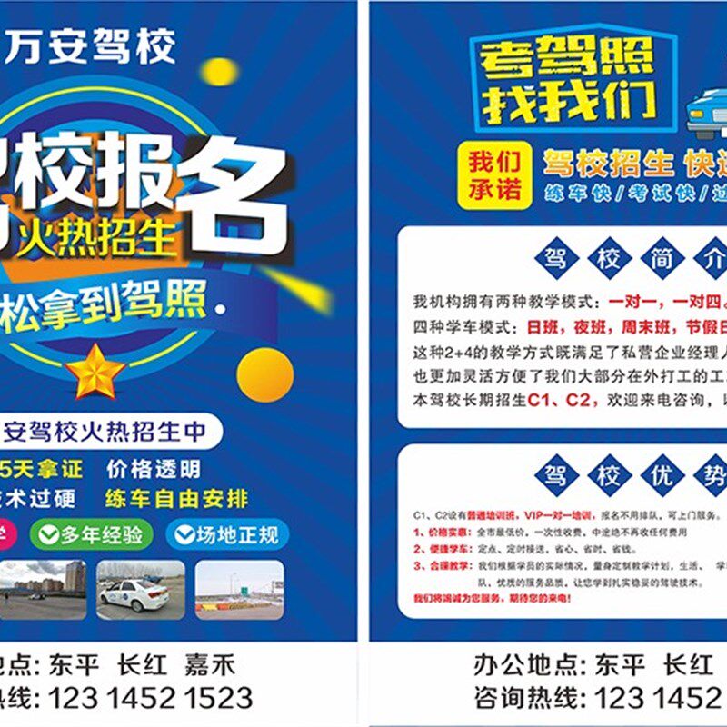 驾校招生培训宣传单印o制p设计彩页三折页海报印刷广告打印定制A4