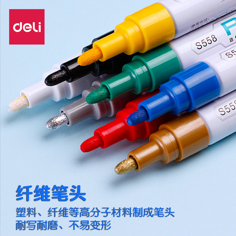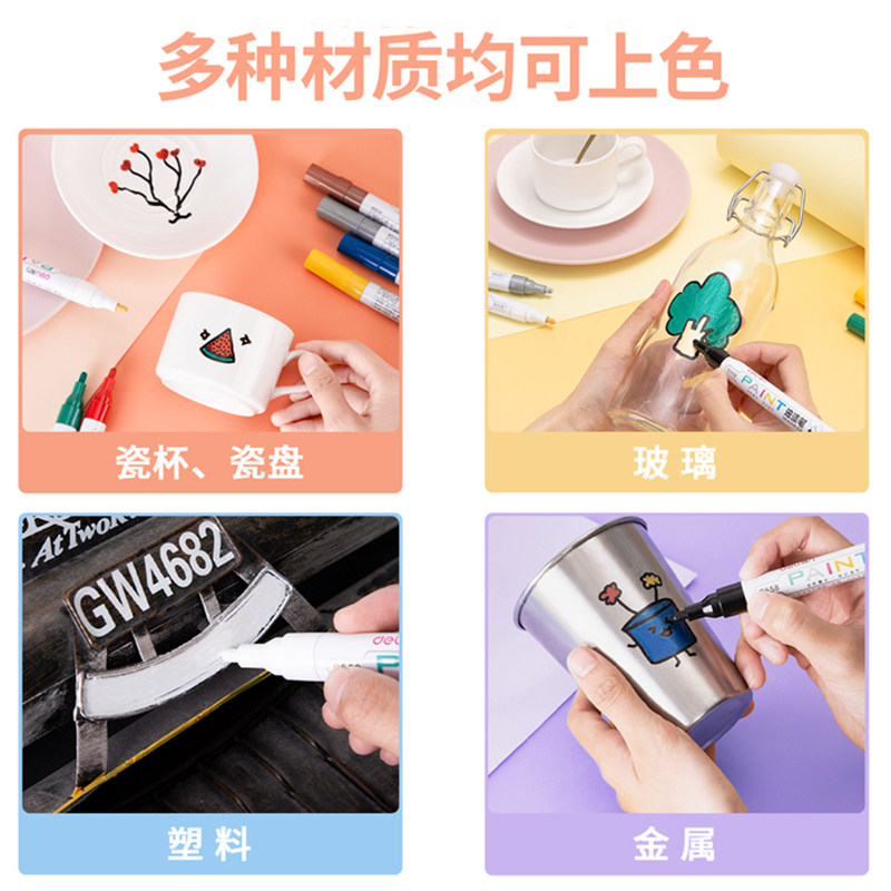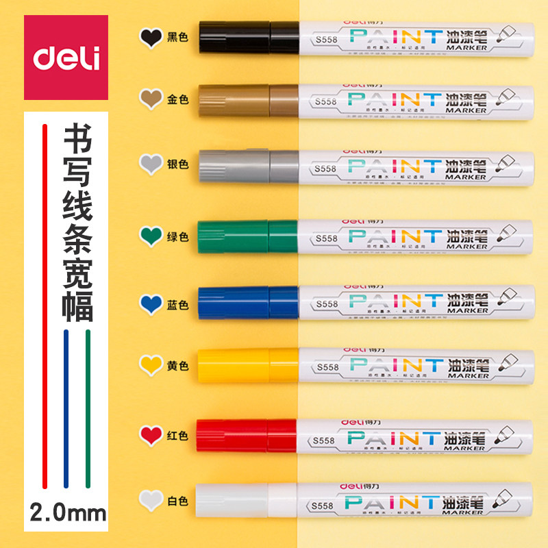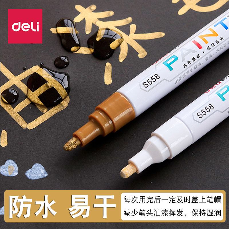 得力油漆笔油性记号笔白色签到笔彩色涂鸦笔不掉色金色补漆笔批发