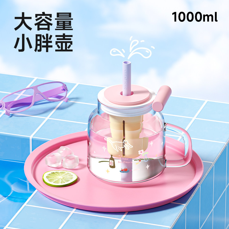 玻璃杯大容量1000ml高硼硅泡茶杯女办公室家用喝水杯子吸管杯新款