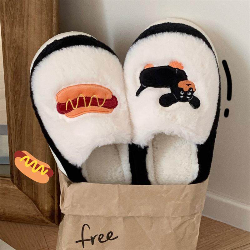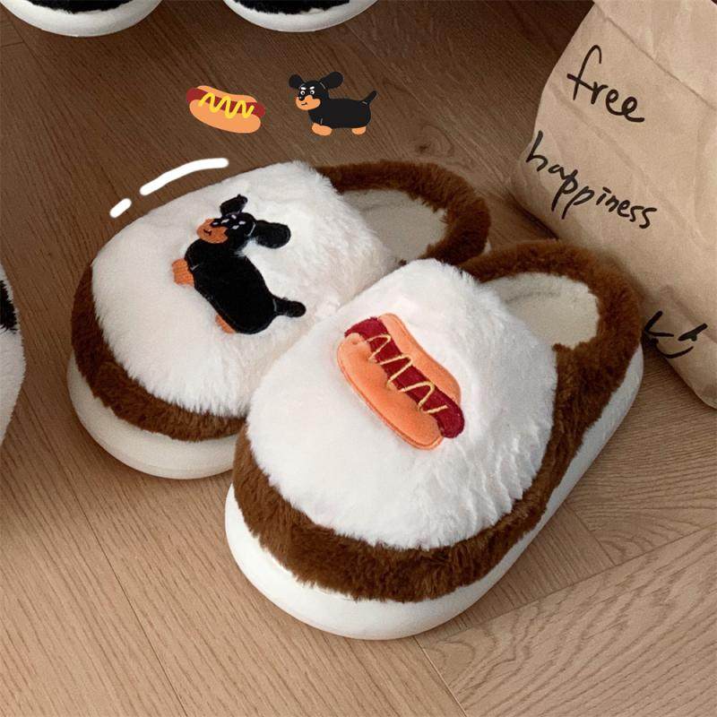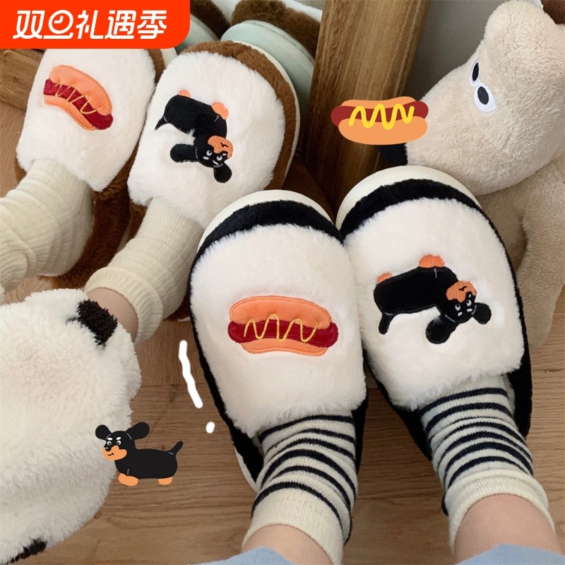 细细条 创意狗狗棉拖鞋男女ins家居保暖软底防滑秋冬季情侣毛毛鞋