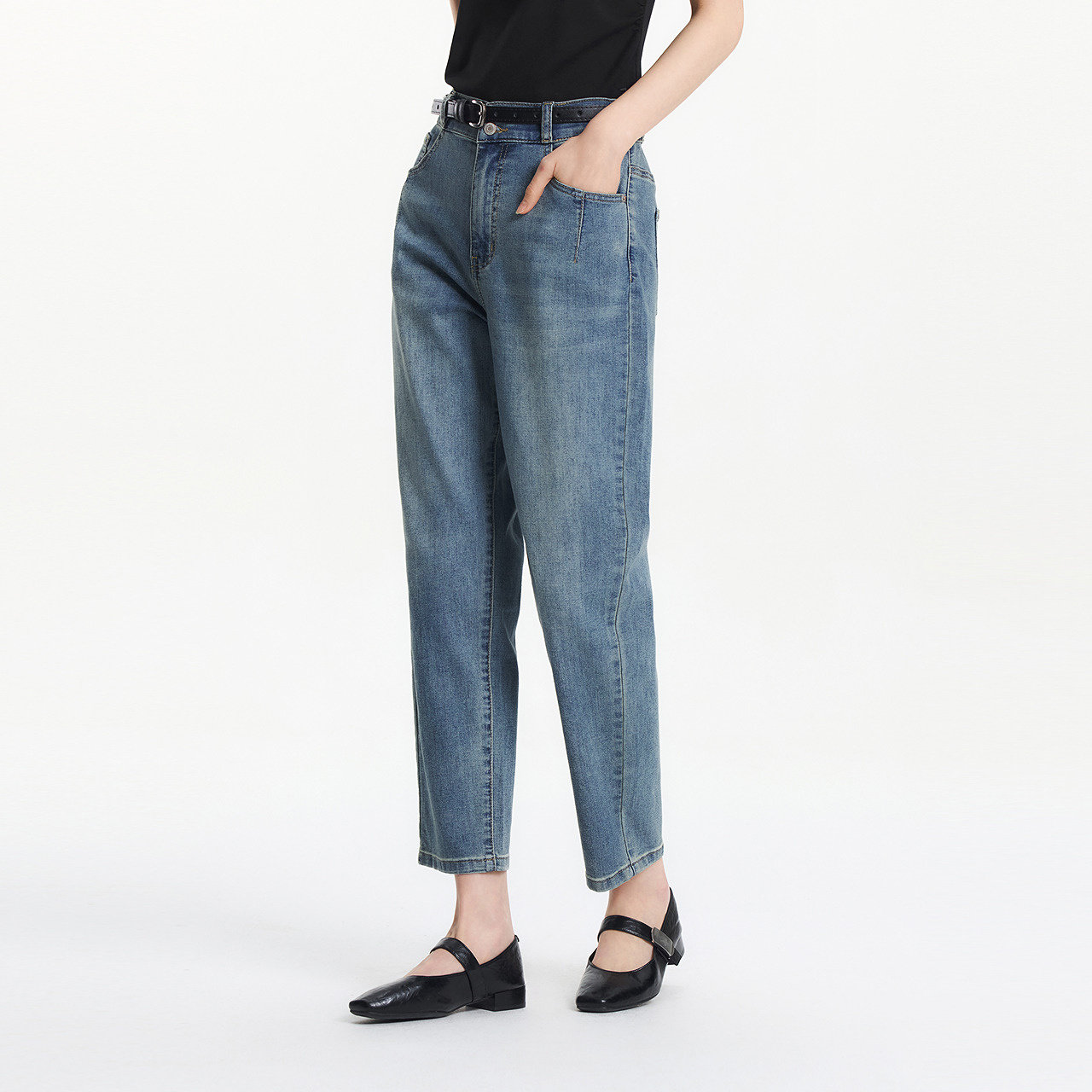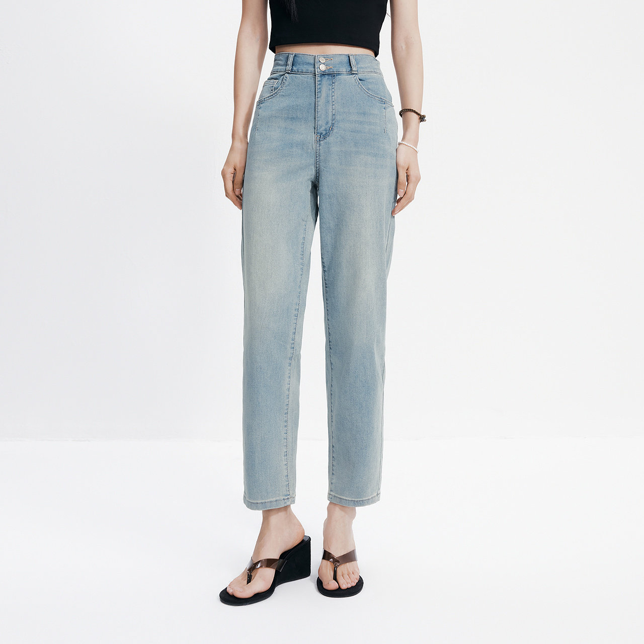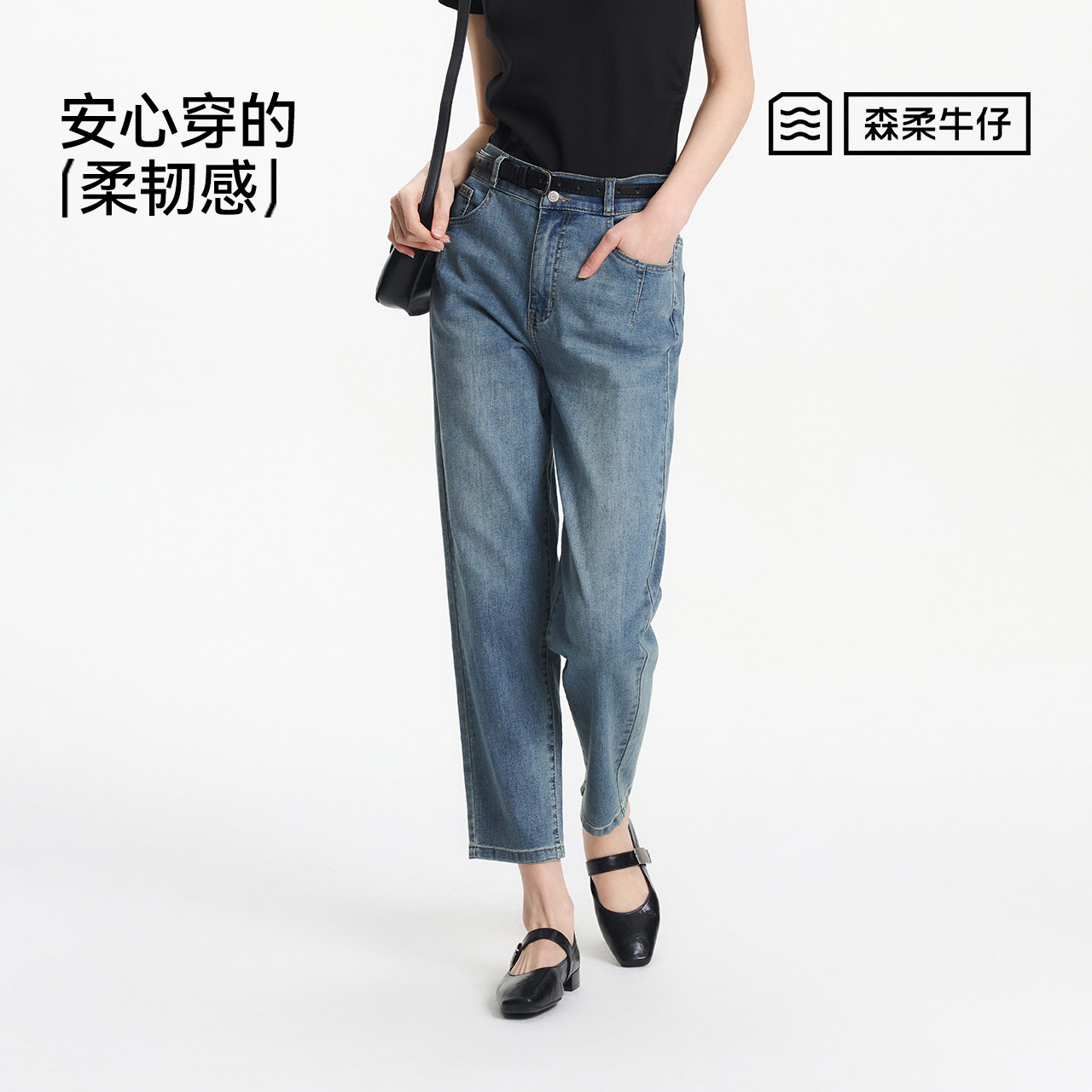 森柔|森马牛仔裤女春季做旧浅色长裤女生显瘦潮流简约时尚直筒裤