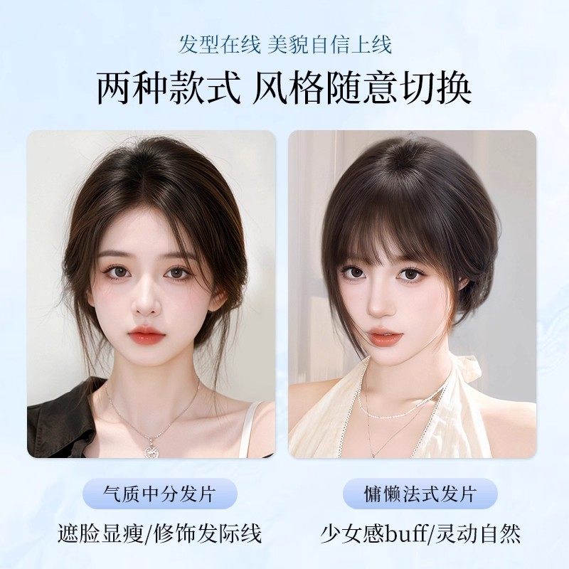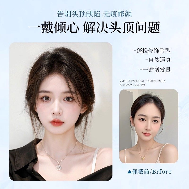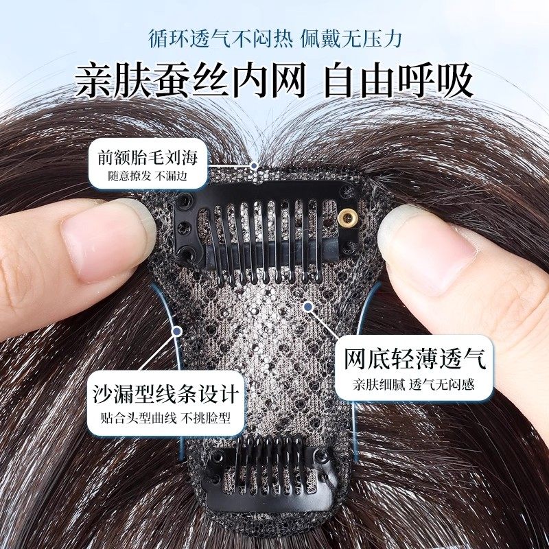 假发女片头顶无痕假发增发量遮白发蓬松高颅顶轻薄八字刘海假发片