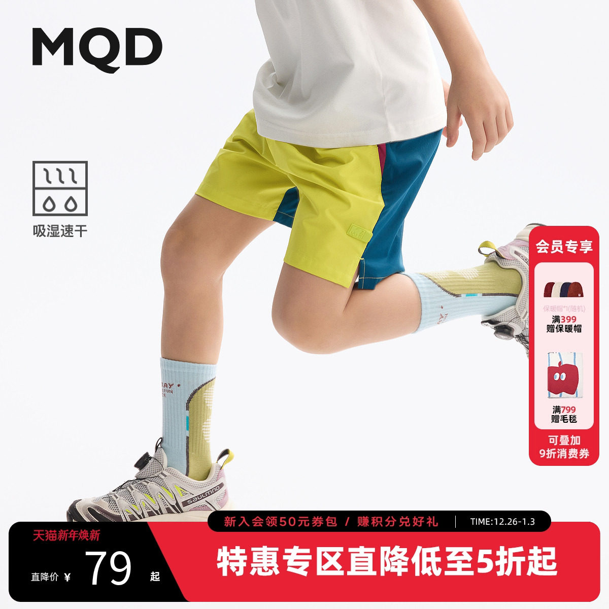 【吸湿速干】MQD童装男童撞色短裤2025夏装新款儿童骑行四分短裤