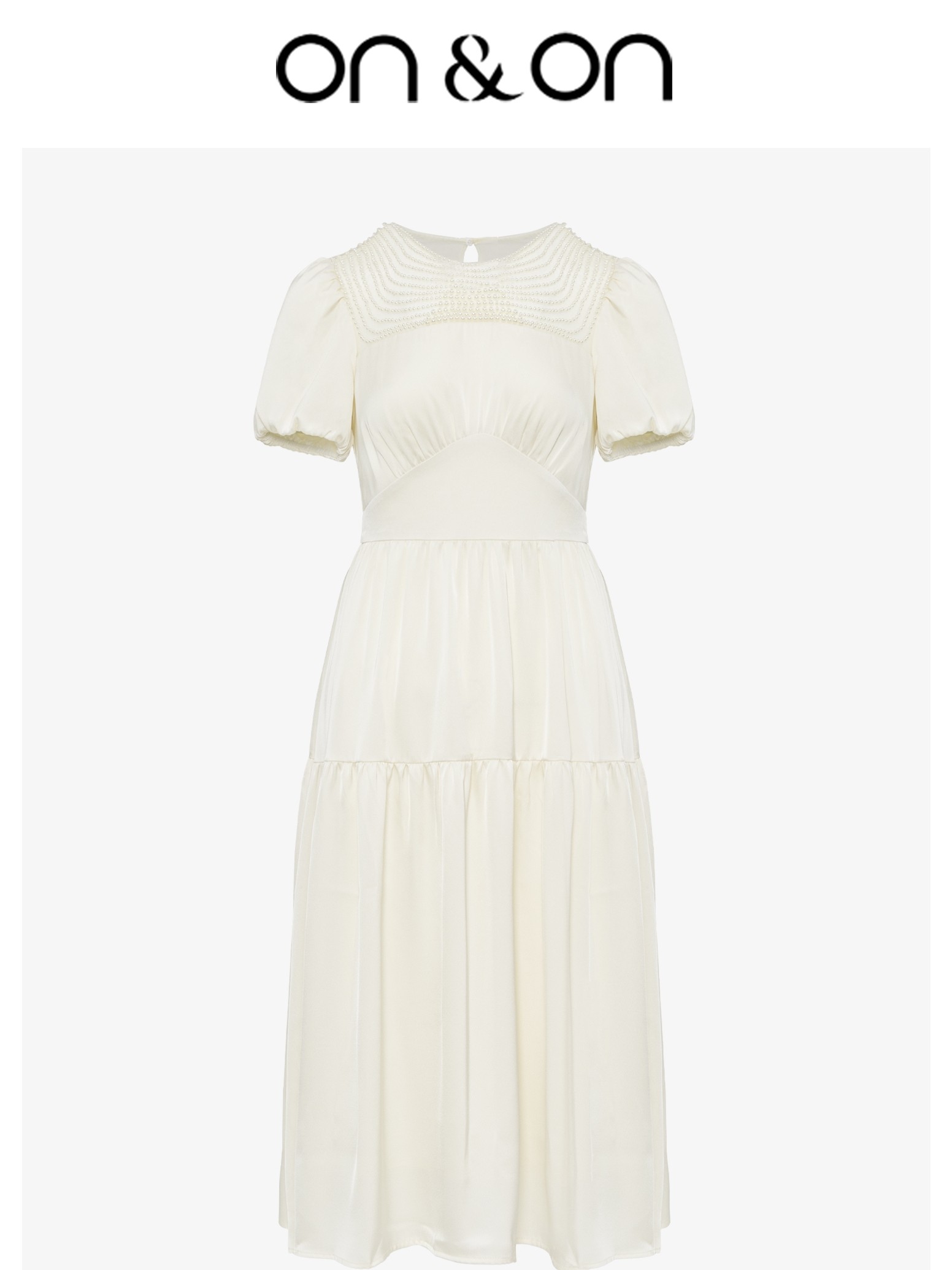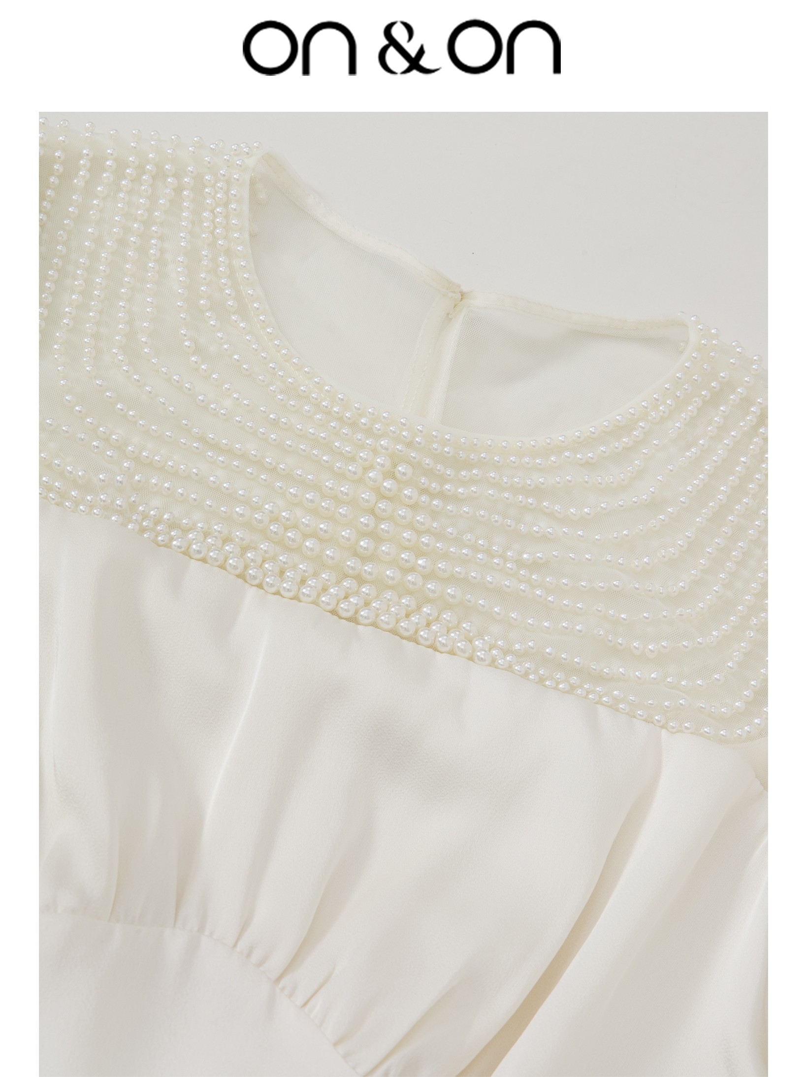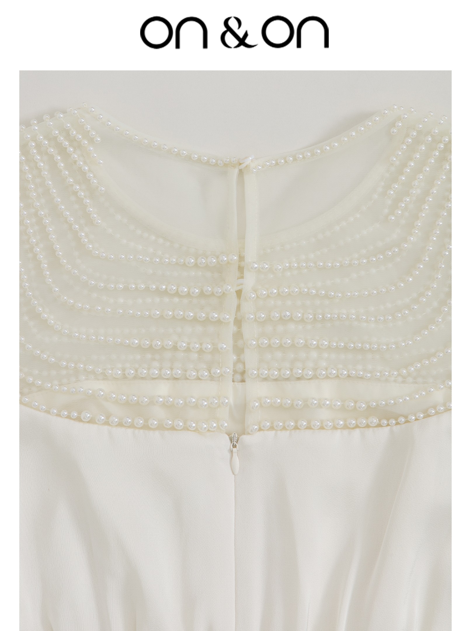 ON&ON/安乃安法式小香手工珍珠方领泡泡袖轻奢连衣裙百搭时尚