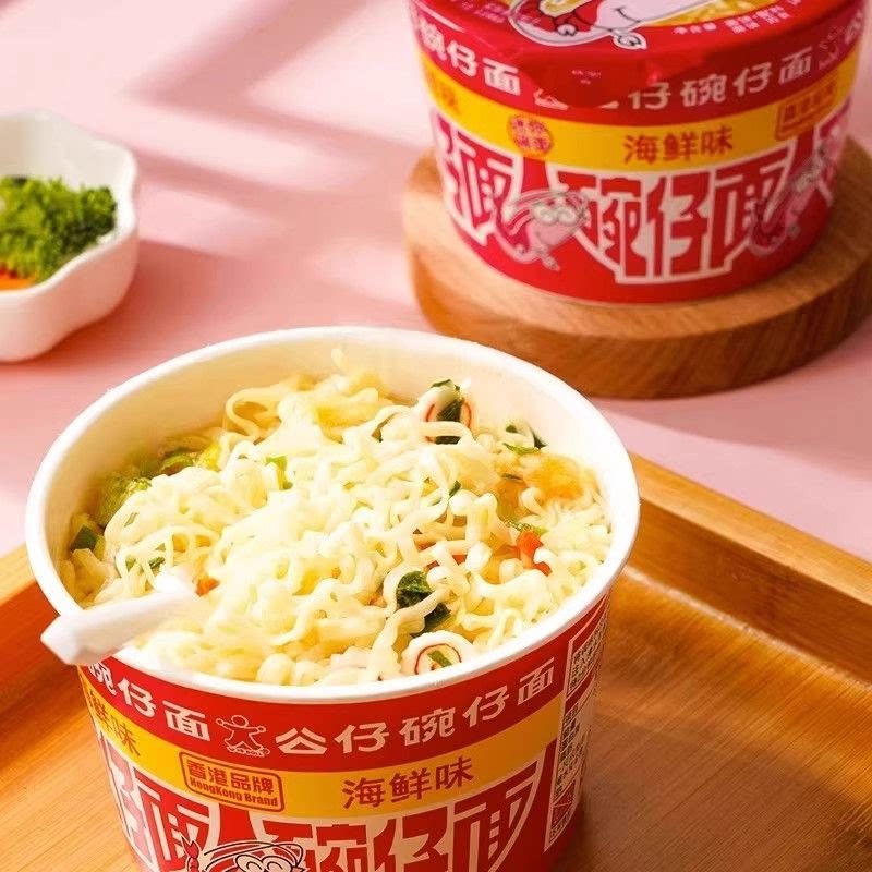 香港公仔面迷你碗仔面速食方便面小碗小杯麻油海鲜味整箱夜宵批发