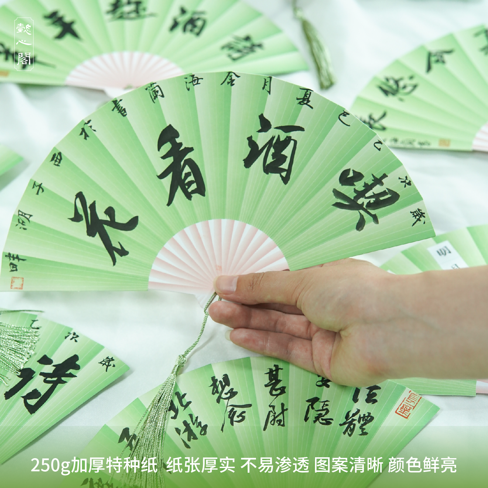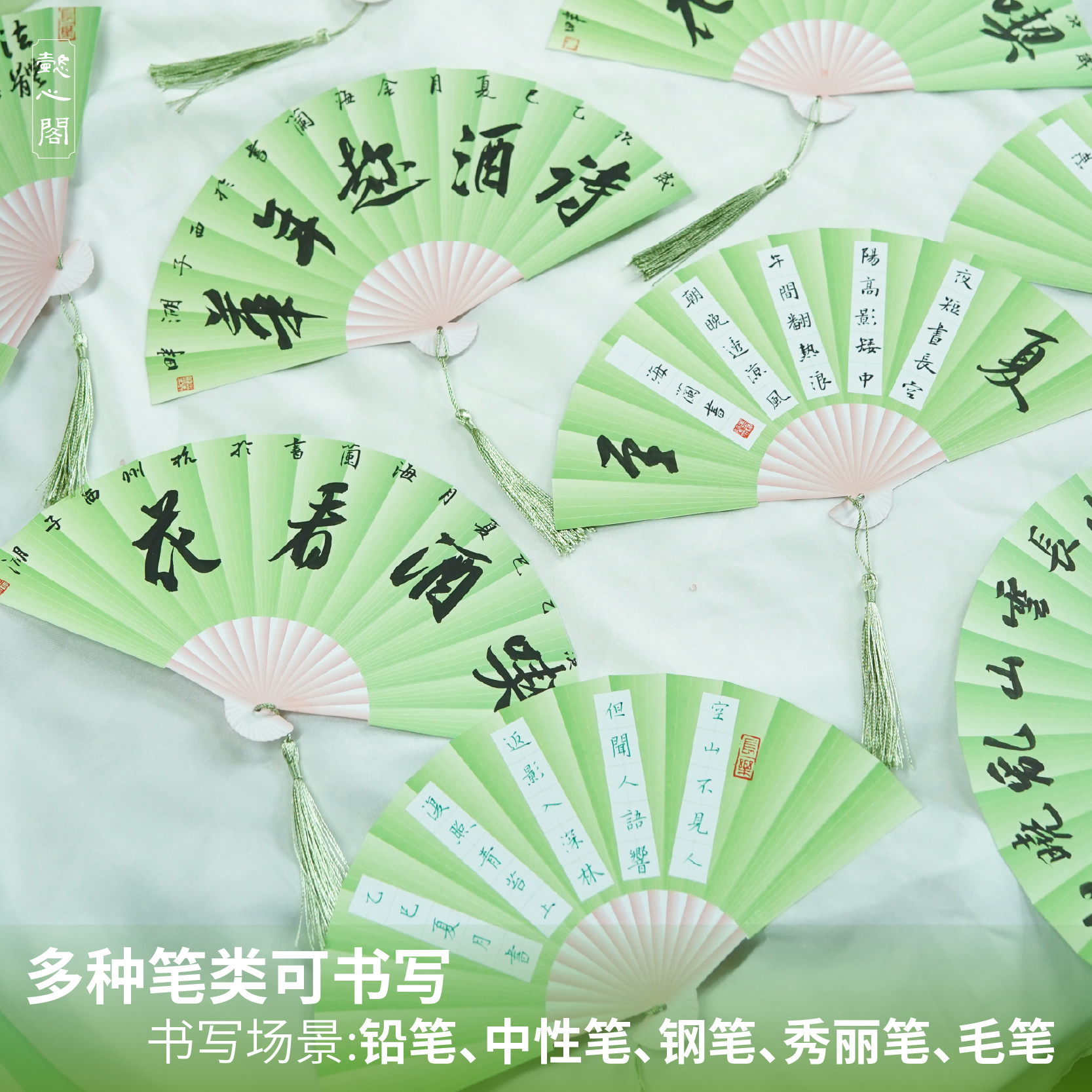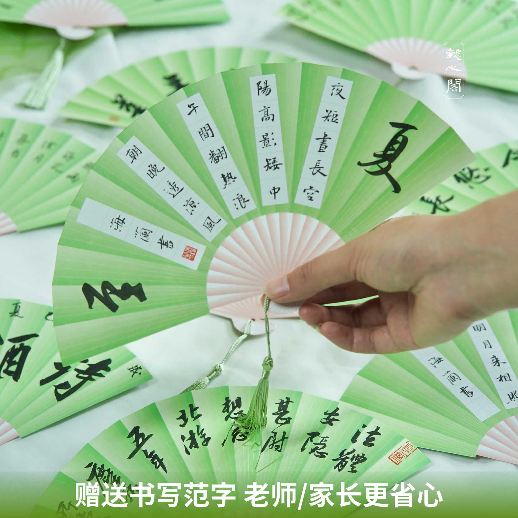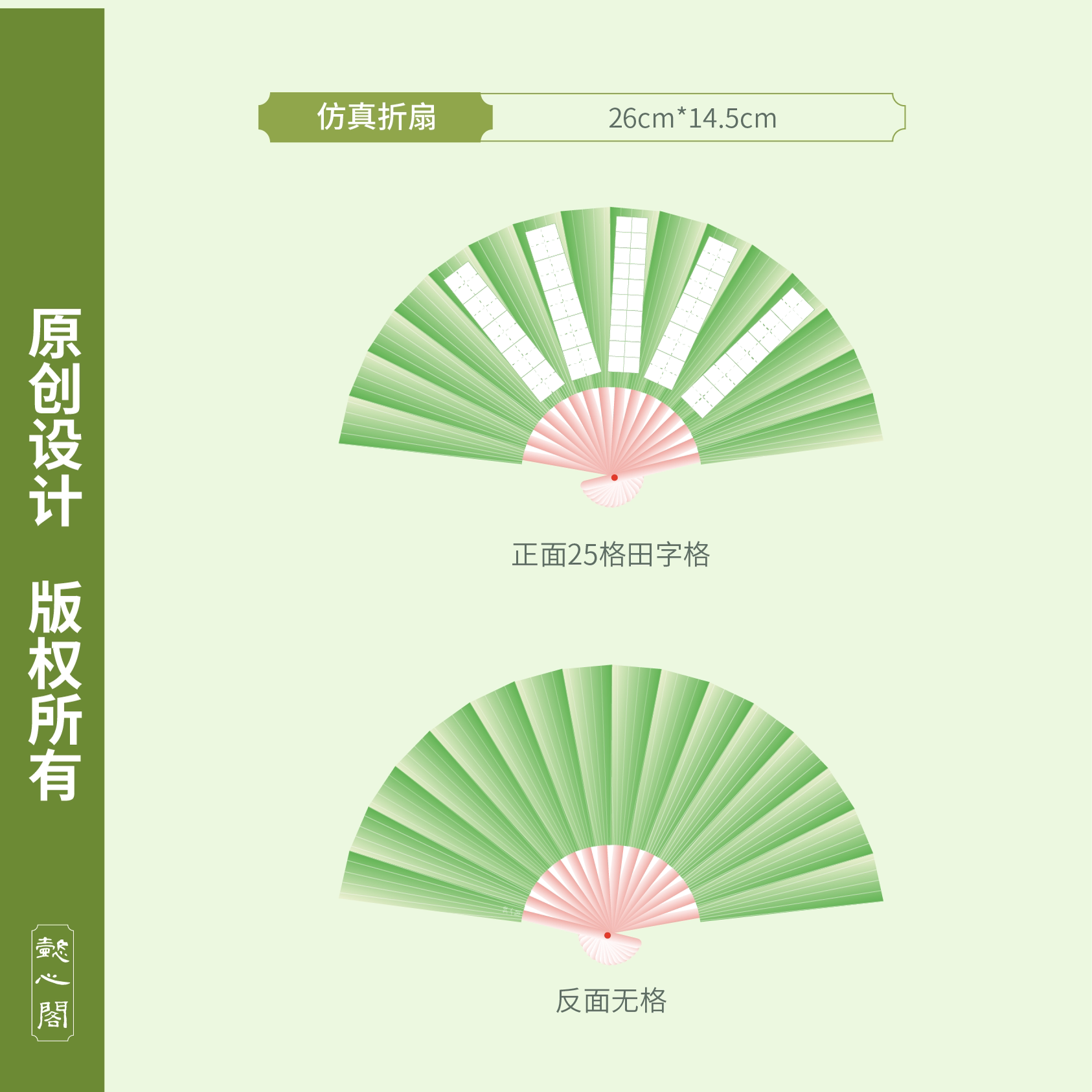 懿心阁仿真折扇创意书法作品纸扇子硬笔书法纸小学生钢笔字专用纸田字格五言古诗写字纸空白加厚展示纸夏天