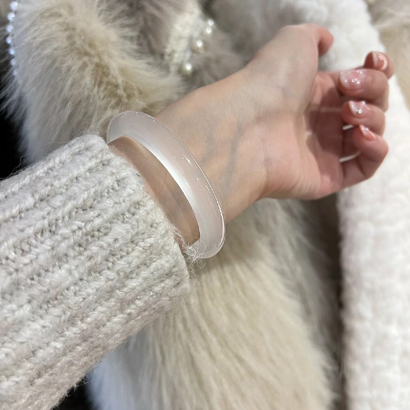 纯天然白月光玛瑙手镯高冰透女款冰种玉镯玉髓白色荔枝冻马料正品