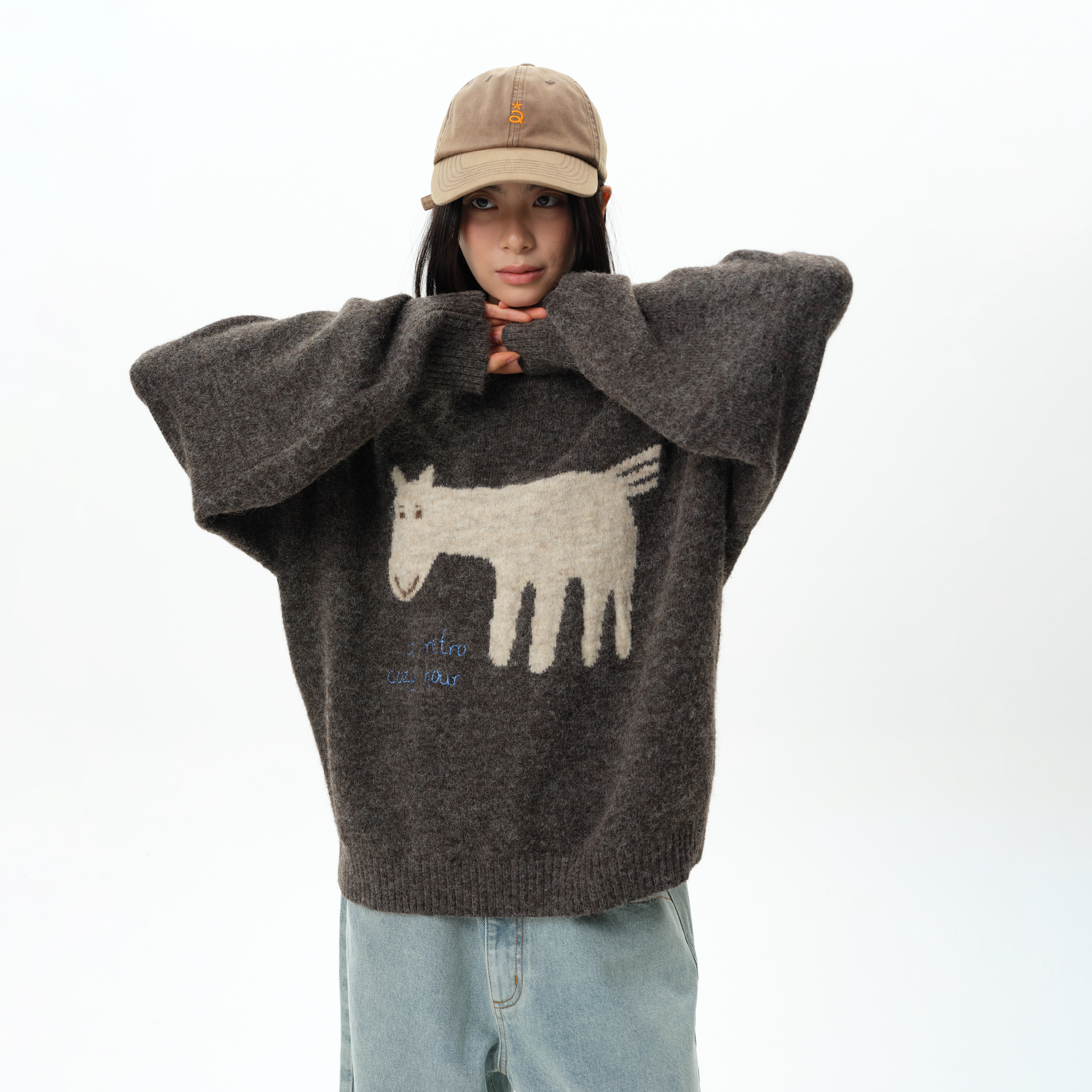 roaringwild a arch咆哮野兽撞色小马情侣款宽松绵羊毛圆领毛衣男