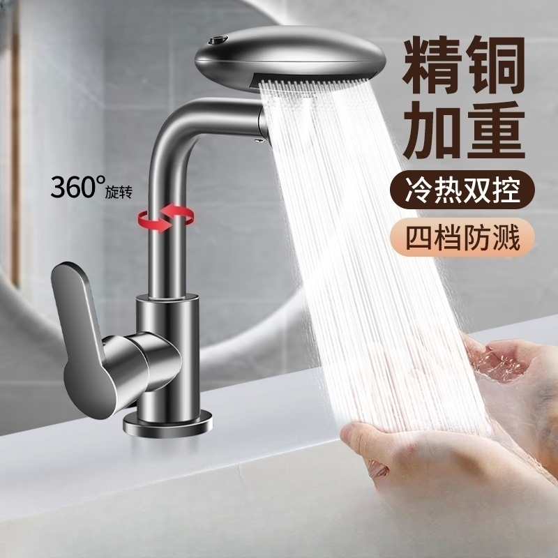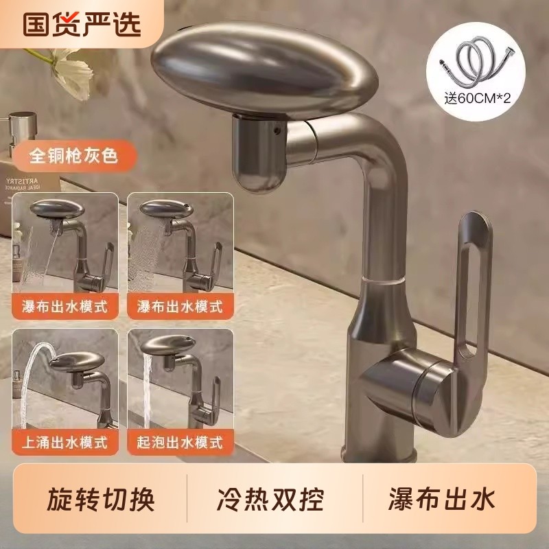 全铜洗脸盆瀑布水龙头冷热洗手盆面盆卫生间家用台上盆万向旋转