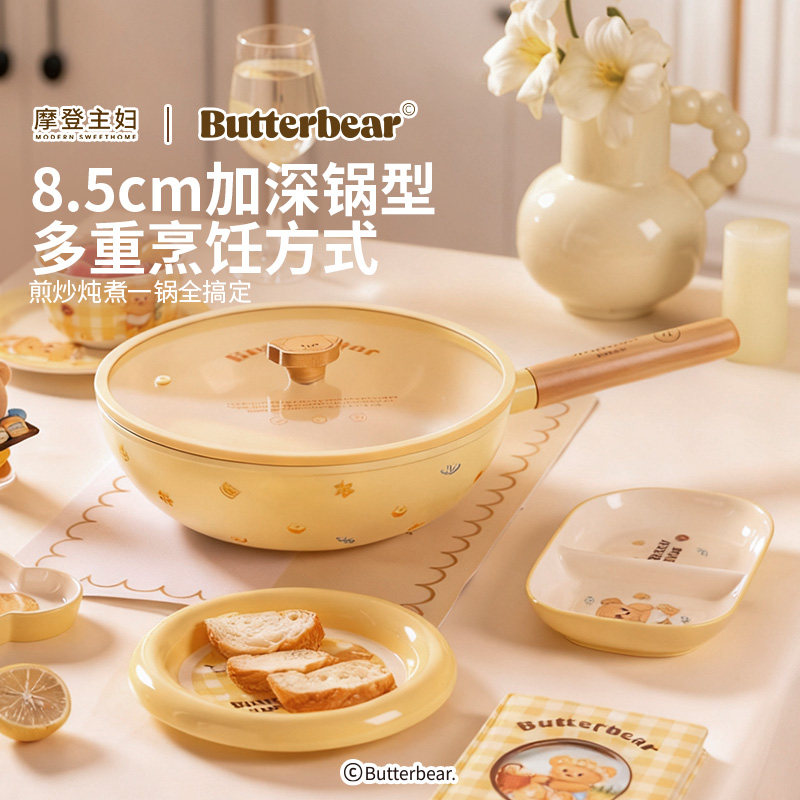 【摩登主妇&黄油小熊】钛陶瓷炒菜锅具家用电磁炉专用不粘平底锅