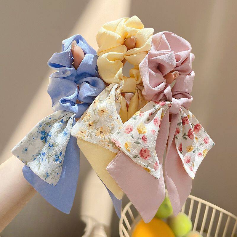 碎花蝴蝶结大肠发圈女夏季扎头绳飘带发带发绳高级感头花头饰发饰