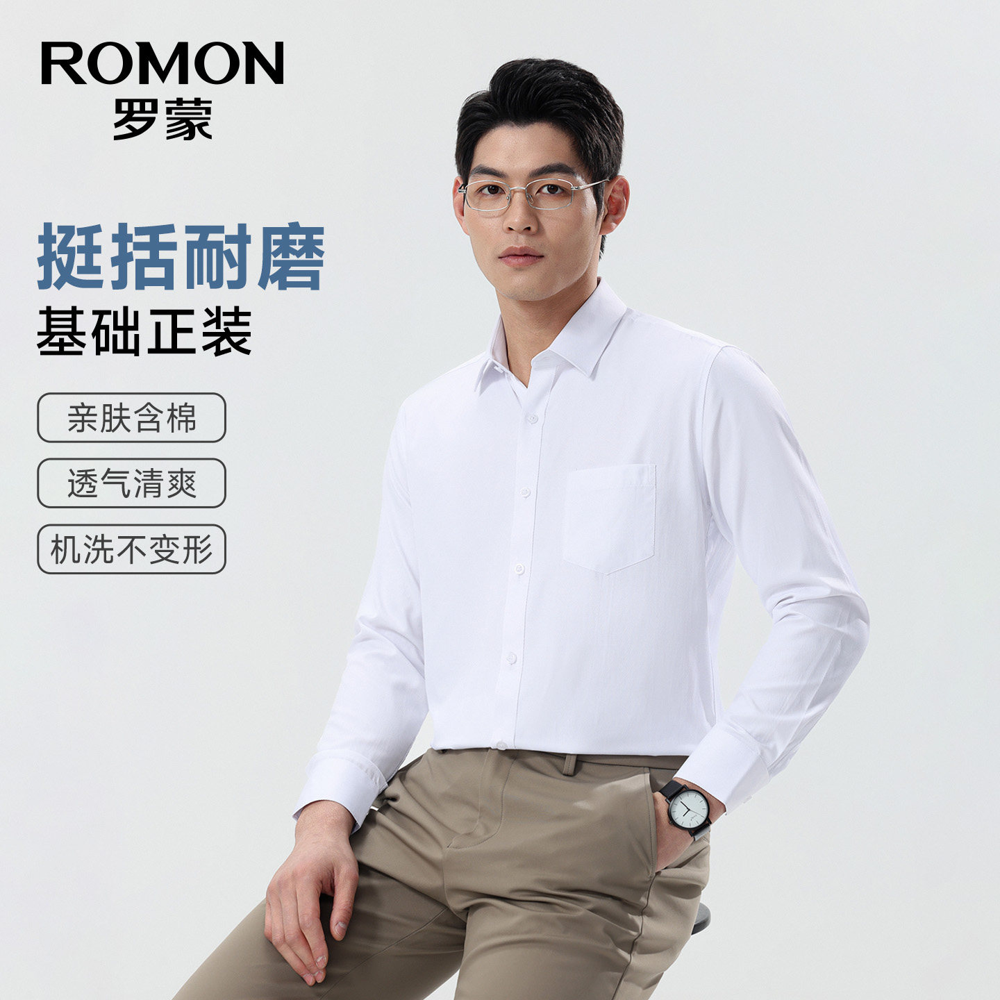 罗蒙衬衫男士长袖2026春季新款修身百搭工装易打理商务职业正装男