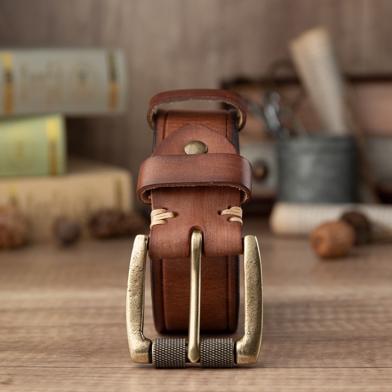 潮流滚轮铜扣真皮皮带男士休闲百搭头层牛皮复古腰带时尚个性