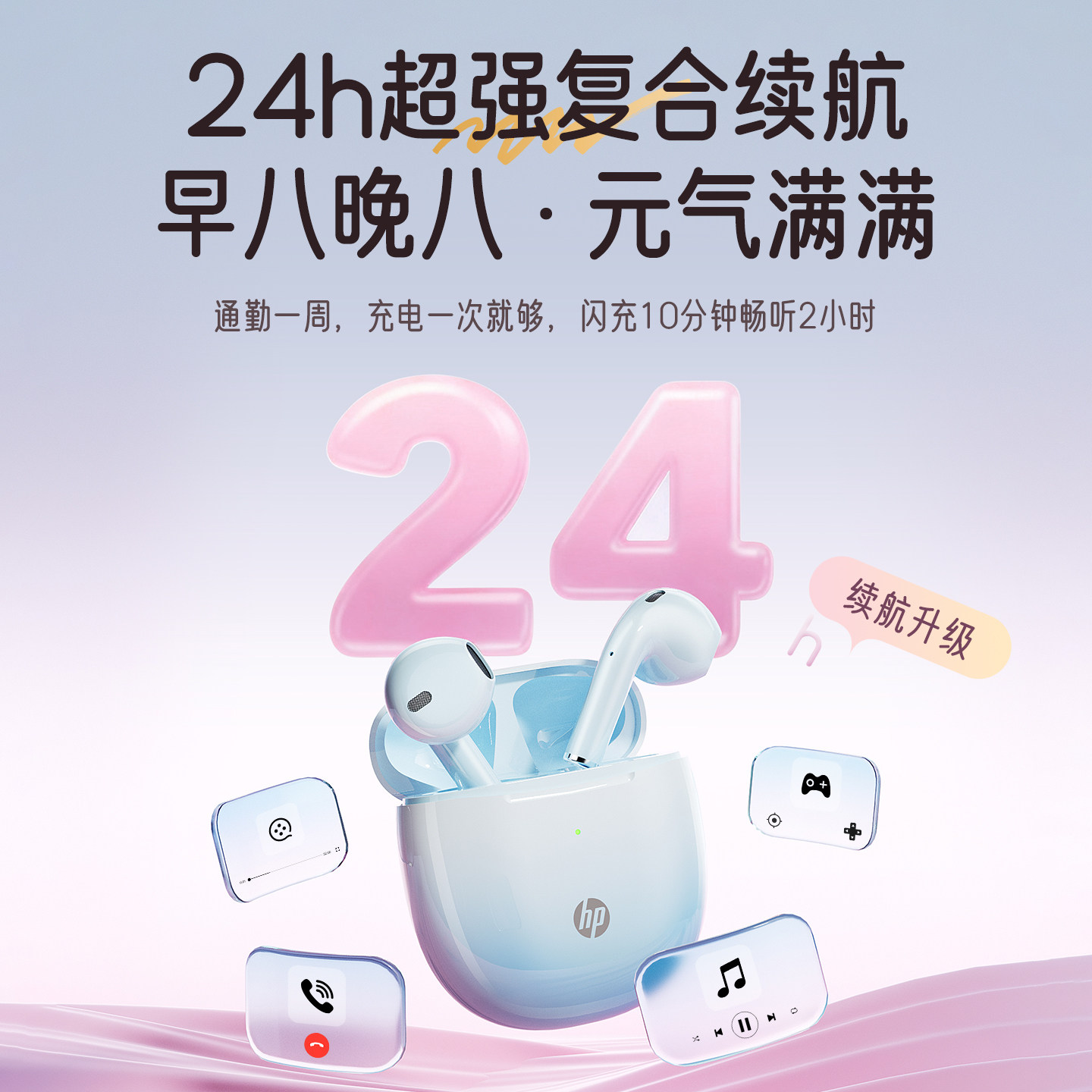 HP蓝牙耳机2025年新款超长续航半入耳式无线运动耳机适用苹果华为