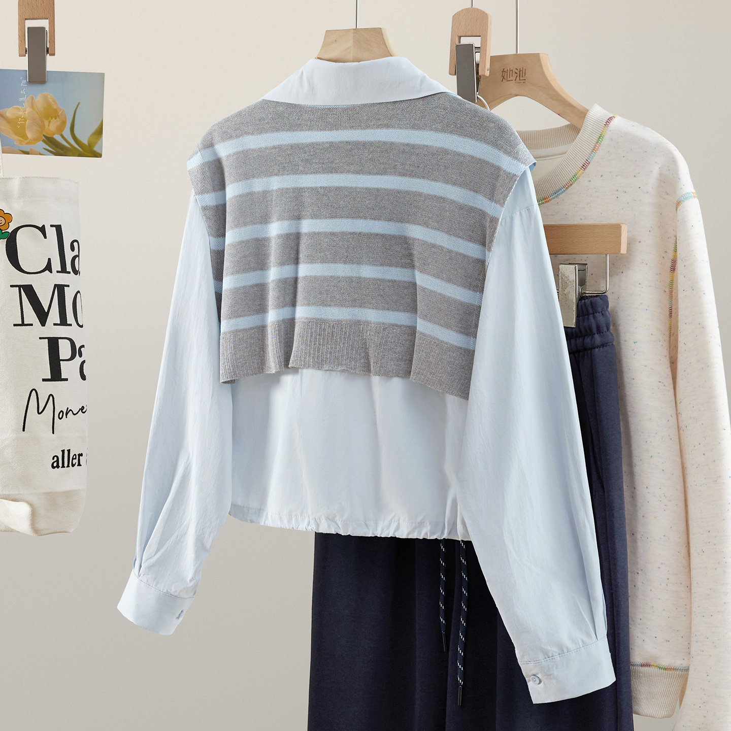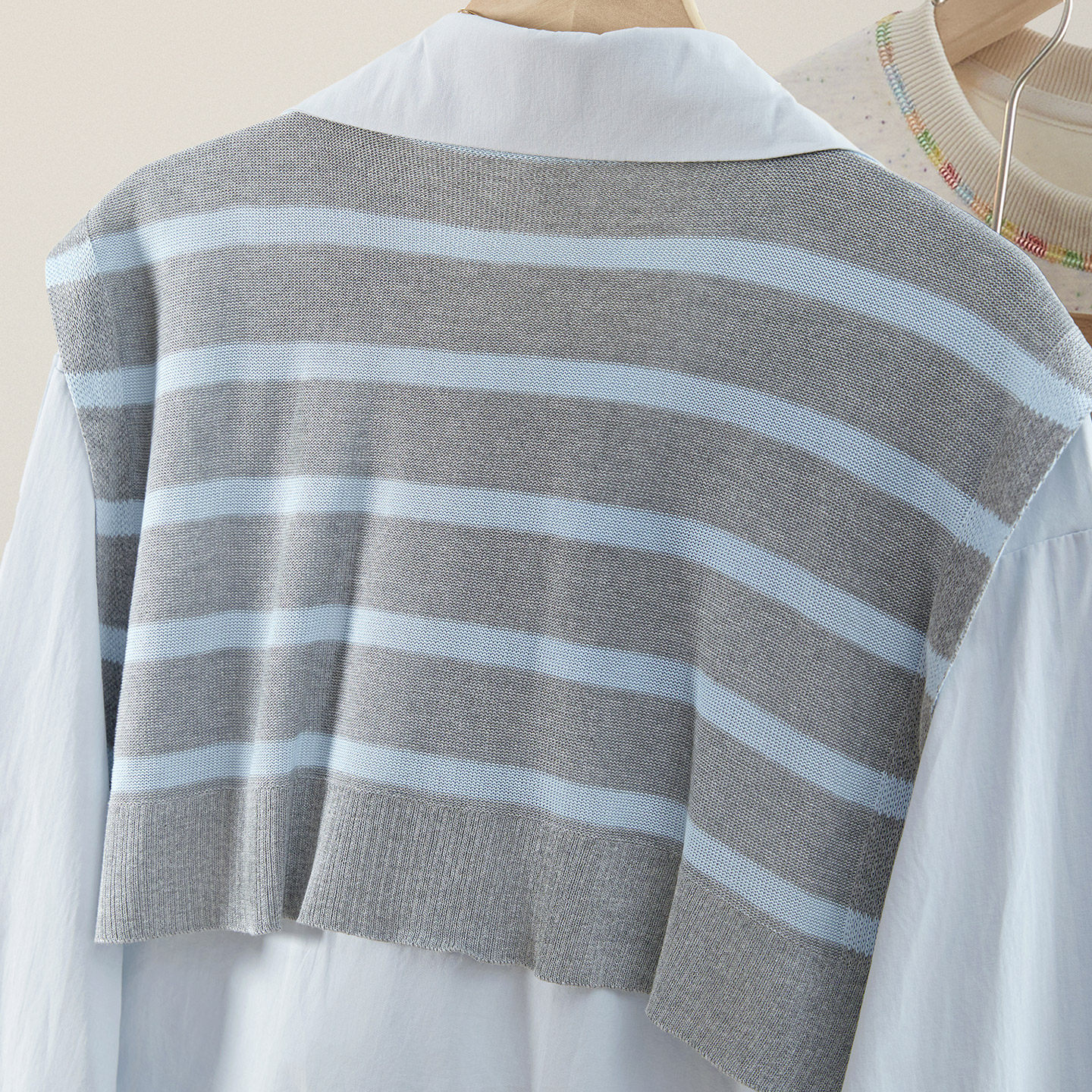 【四季叠搭】秋冬新款百搭条纹无袖衬衫叠穿背心翻领衬衣内搭显瘦