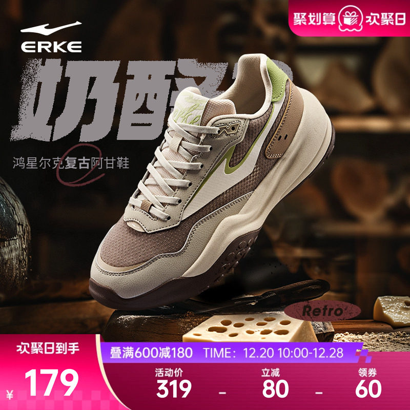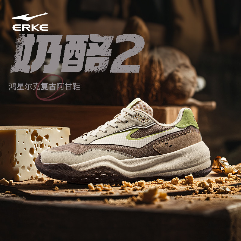 鸿星尔克奶酪2运动鞋男鞋秋冬新款网面透气休闲鞋百搭软底阿甘鞋