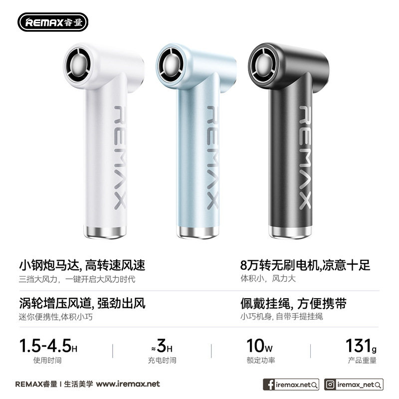 remax迷你手持小风扇静音大风力涡轮高速小电风扇可充电便携小巧
