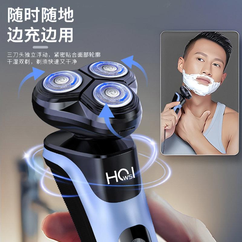 电显三头剃须刀电动充电式浮动便携胡须刀旅行年货节干净旋转式