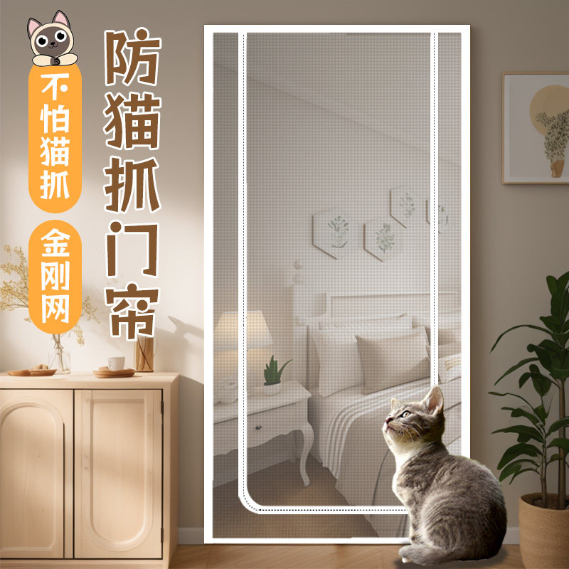 防猫防蚊门帘金刚网磁性自吸隔断帘家用纱门免打孔魔术贴宠物纱帘