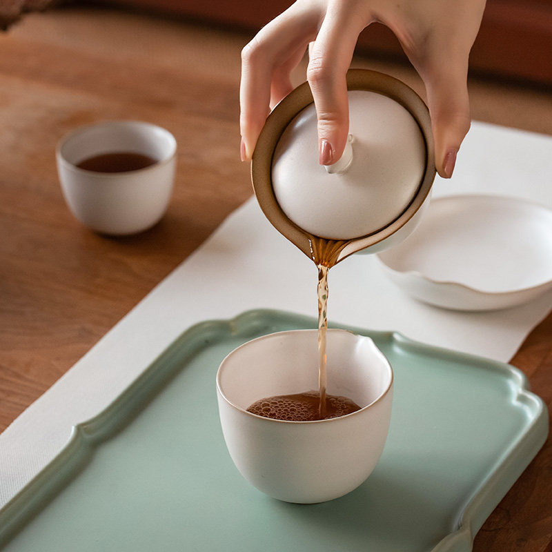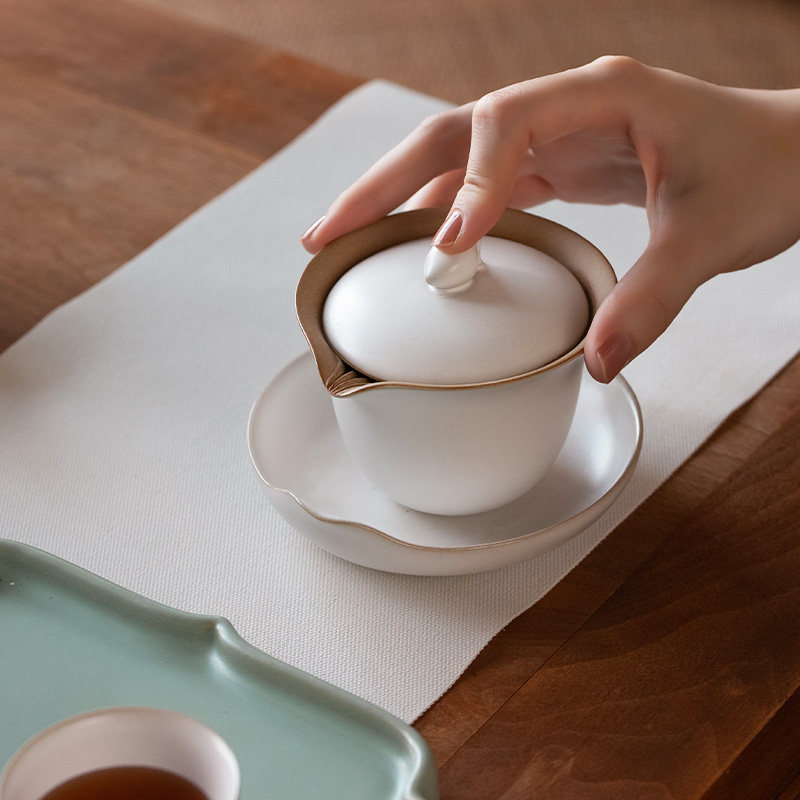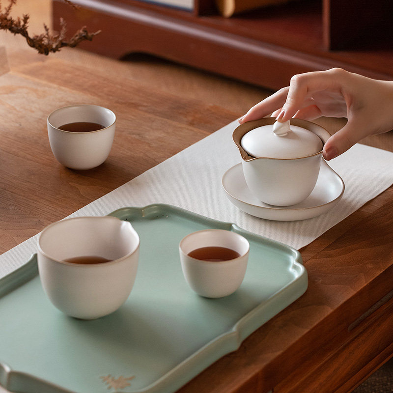 万仟堂三才盖碗中式家用轻奢泡茶杯陶瓷功夫茶壶茶具套装心心相印