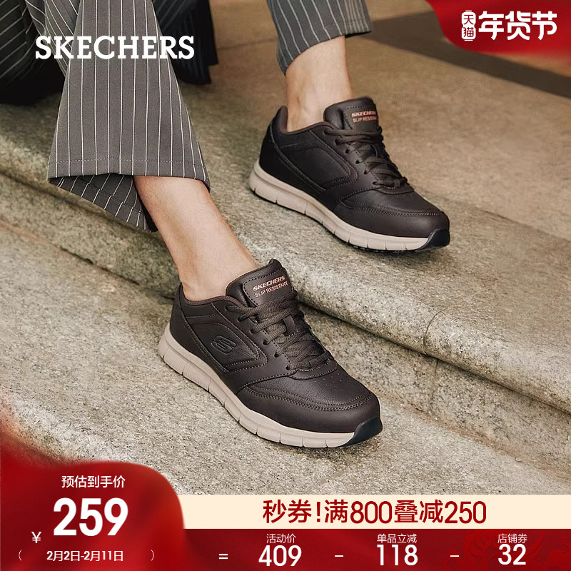 Skechers斯凯奇男鞋春季休闲运动皮鞋通勤鞋黑色商务鞋百搭工作鞋