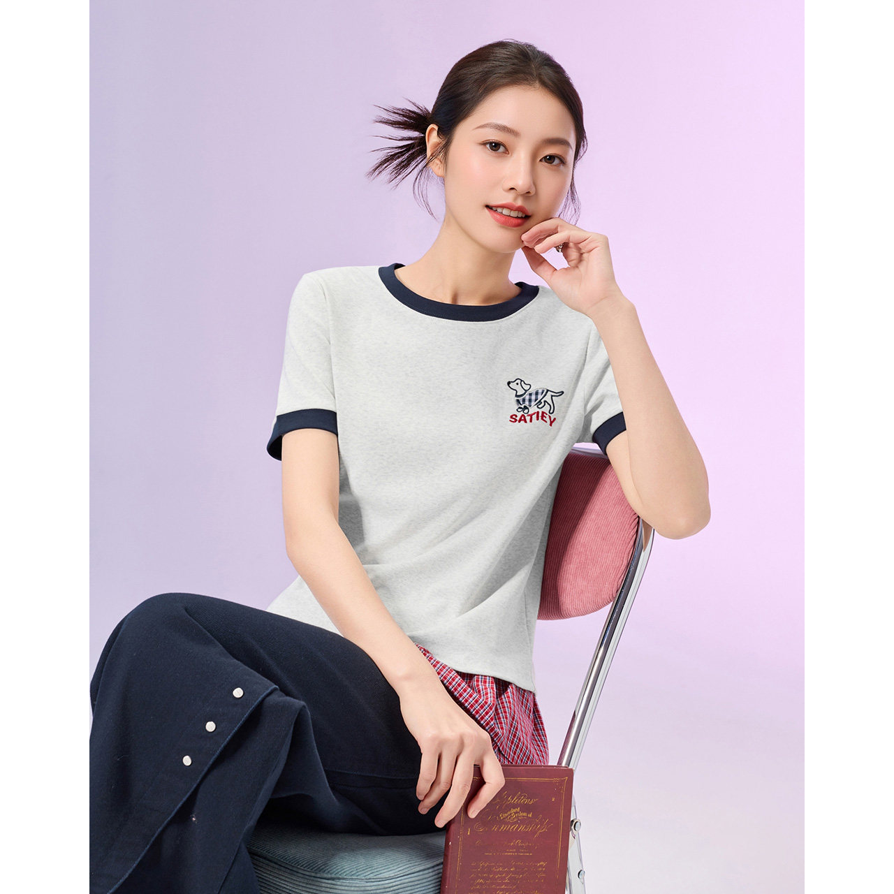 陈都灵丨凉感T森马短袖T恤女修身纯色基础夏季新款圆领白色女装