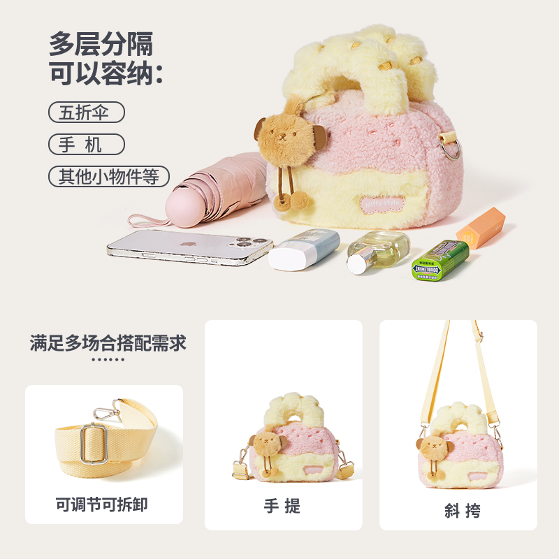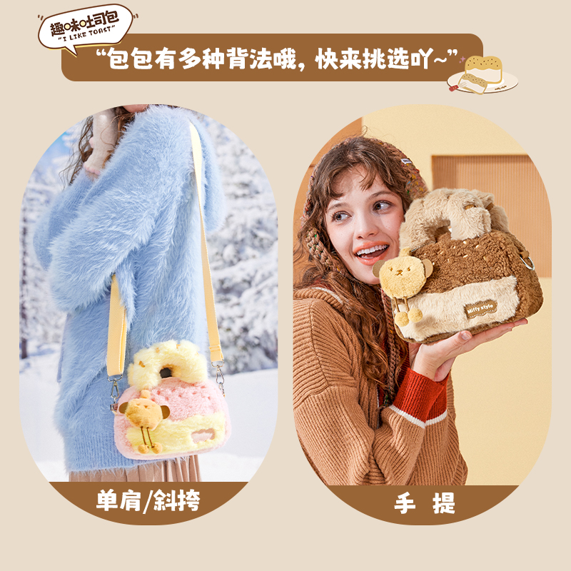 米菲趣味吐司毛绒手提包包2026冬季新款百搭女式小众毛毛斜挎包