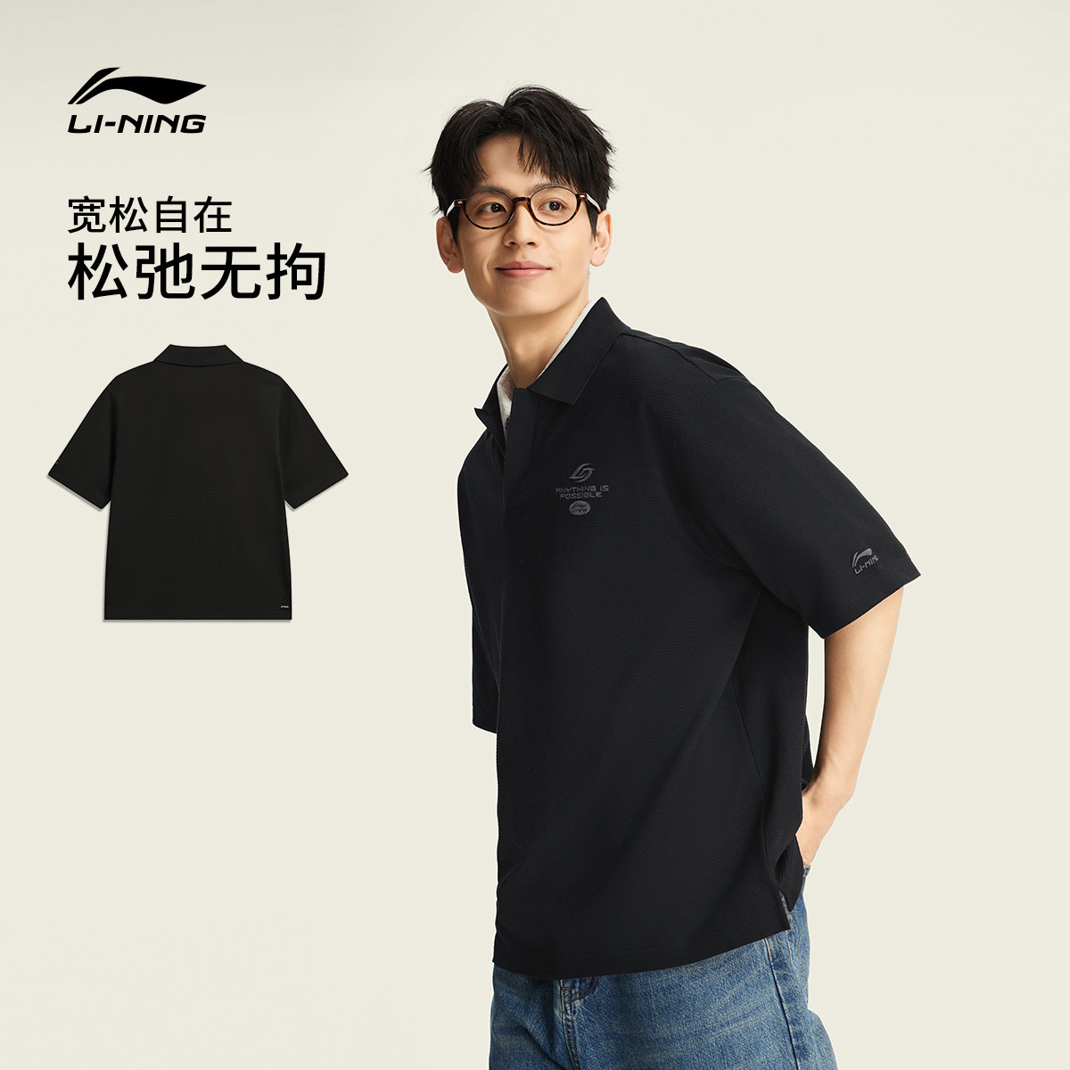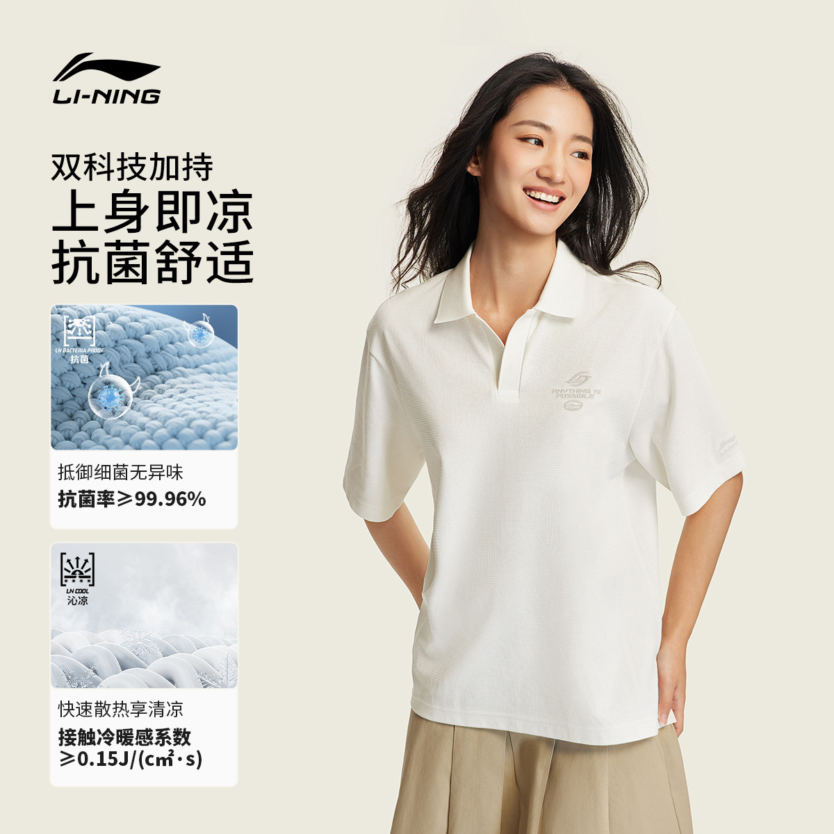 李宁凉感POLO衫男士春夏2026新款情侣潮流上衣翻领T恤运动短袖女