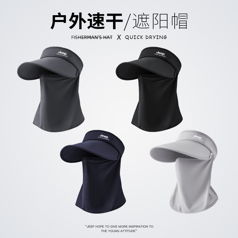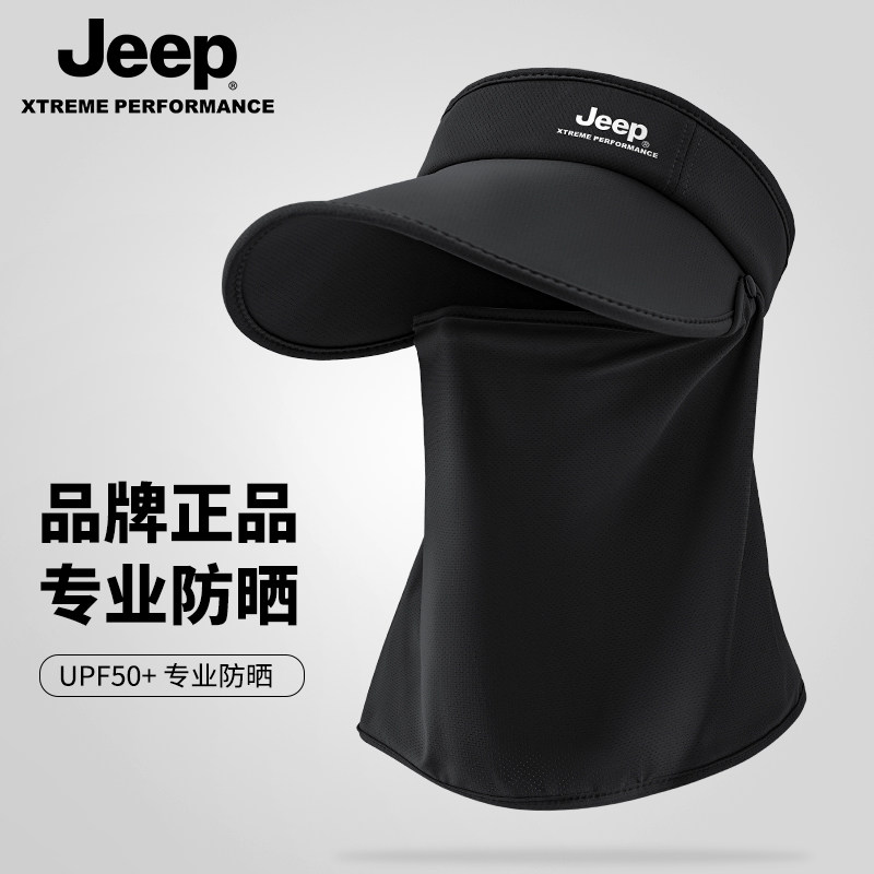jeep吉普遮阳帽男士户外防紫外线空顶防晒钓鱼运动骑车男遮脸面罩
