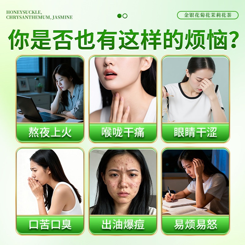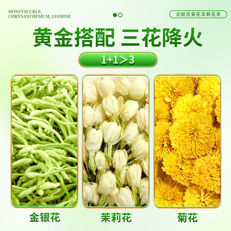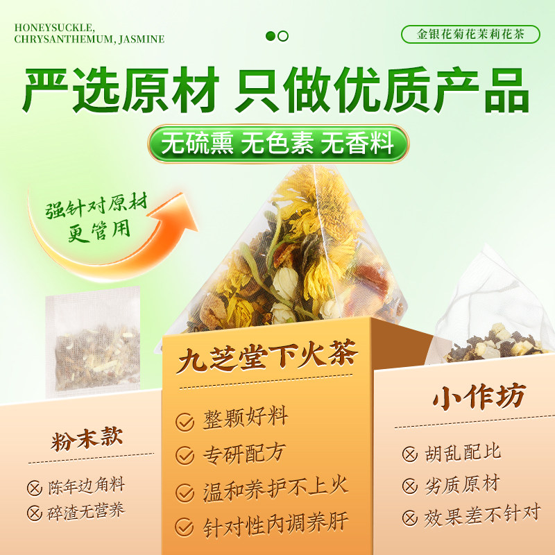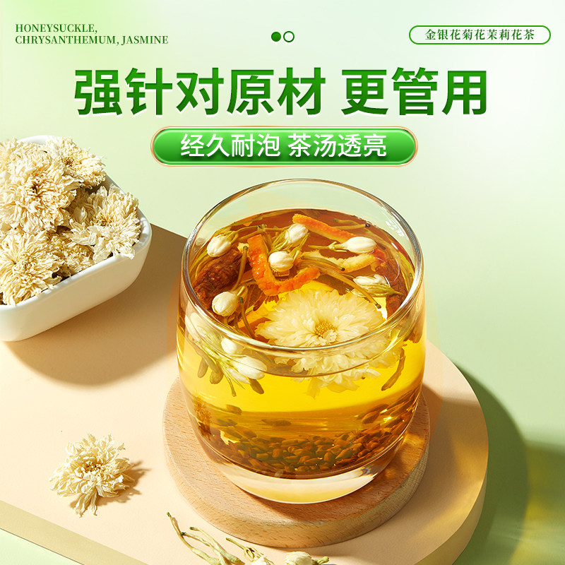 九芝堂金银花菊花茉莉花茶去肝火清热解排袪痘毒三花茶养肝护肝茶