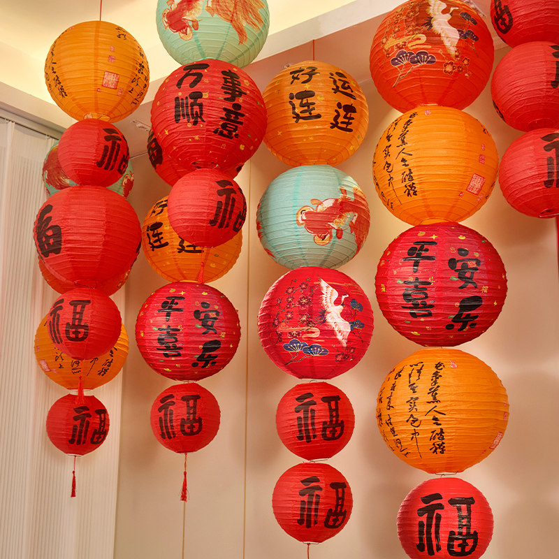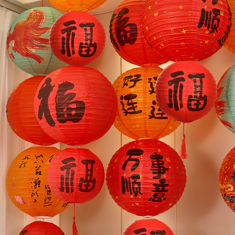 2026马年福字灯笼新年春节户外装饰古风纸灯笼串过年布置挂饰氛围
