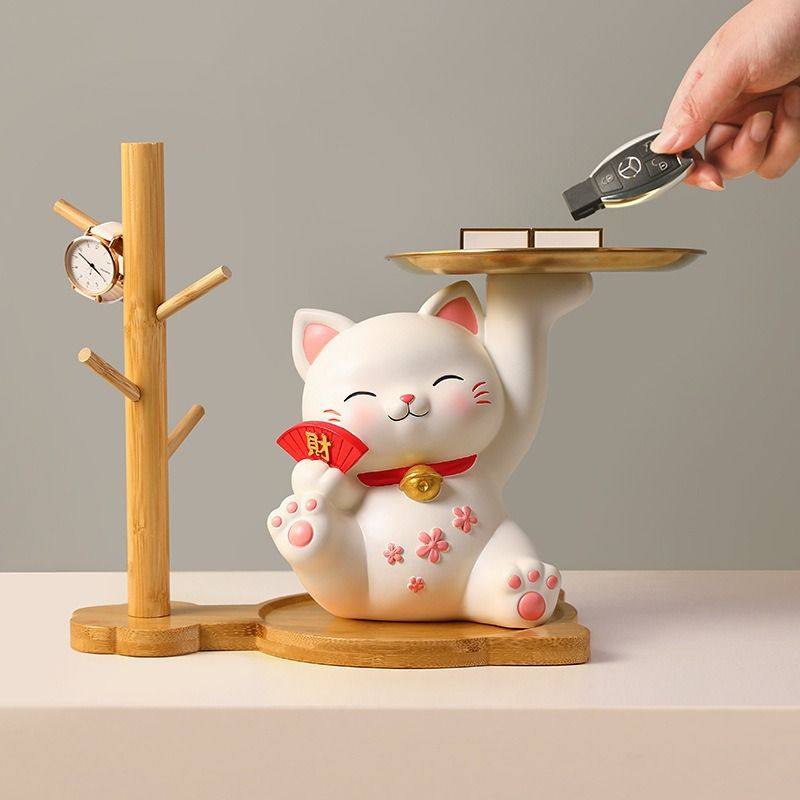 招财猫玄关钥匙收纳摆件客厅现代旺宅家居桌面装饰品乔迁新居送礼