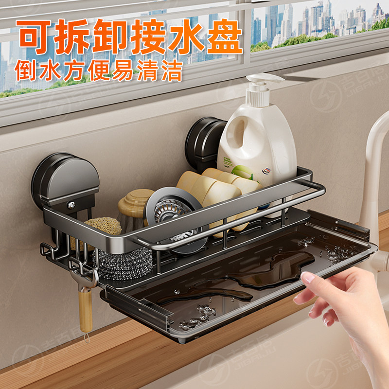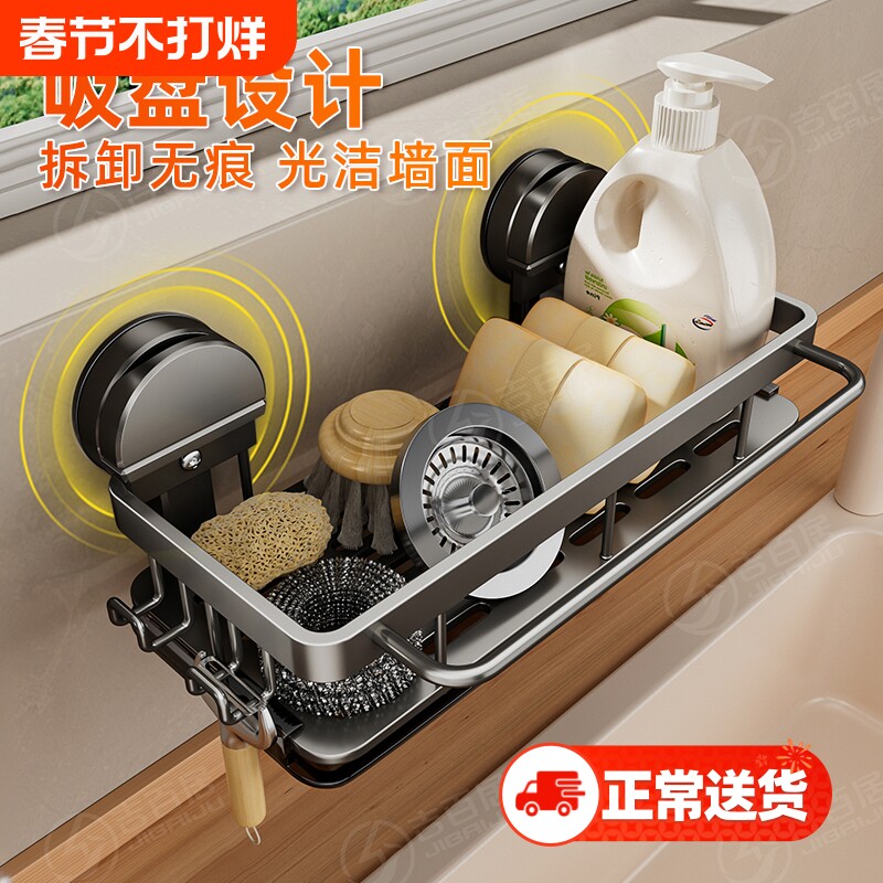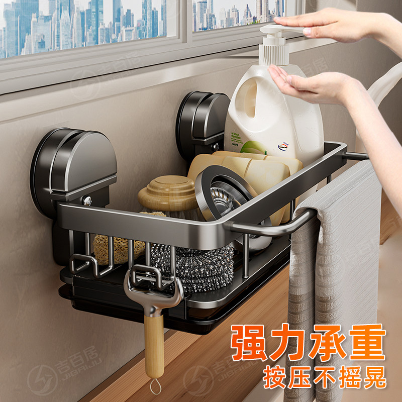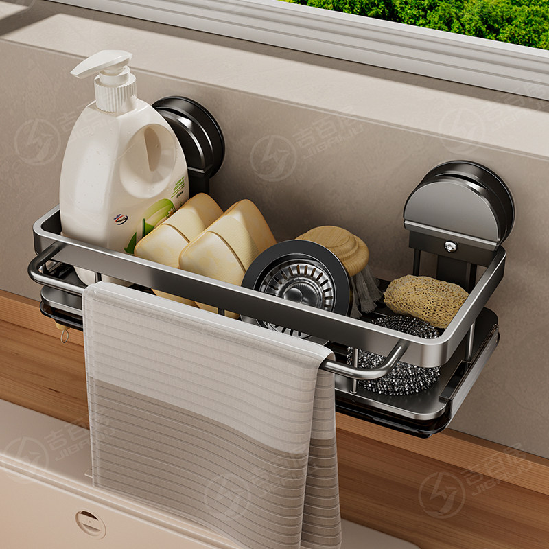 橱柜窄缝架下水槽厨房收纳置物架壁挂小尺寸吸盘抹布架合金沥水