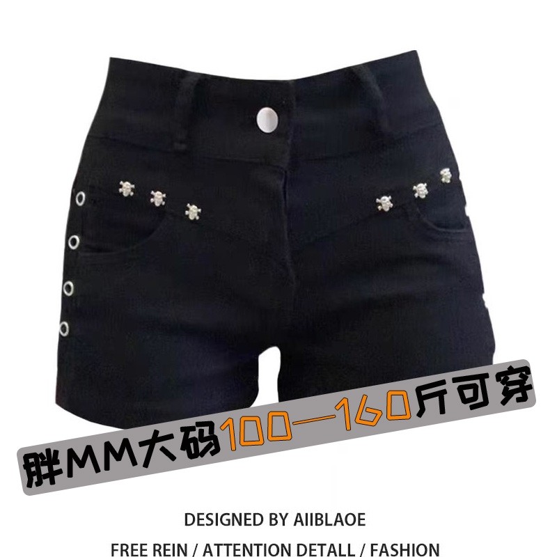 设计感大码低腰黑色短裤2025美式新款性感牛仔超短裤女铆钉腰带